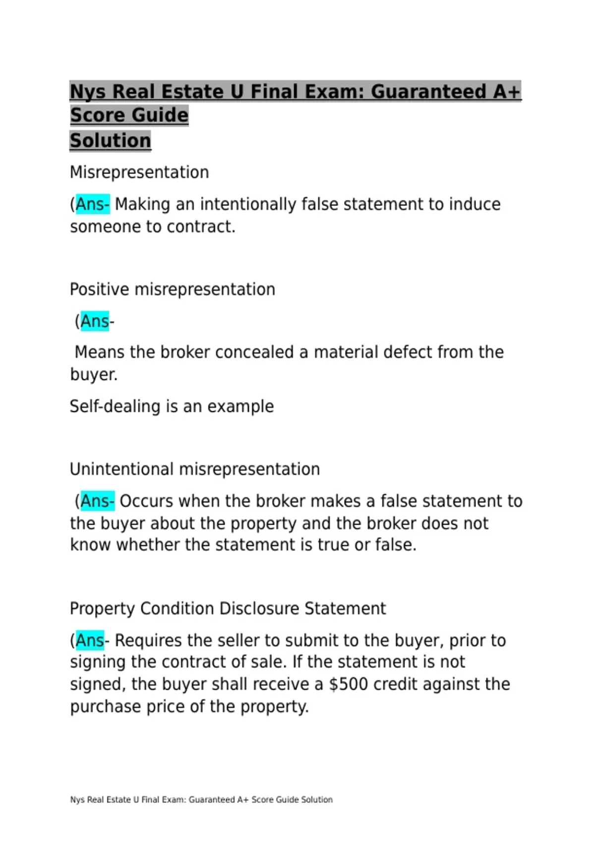 Nys Real Estate U Final Exam: Guaranteed A+ Score Guide Solution