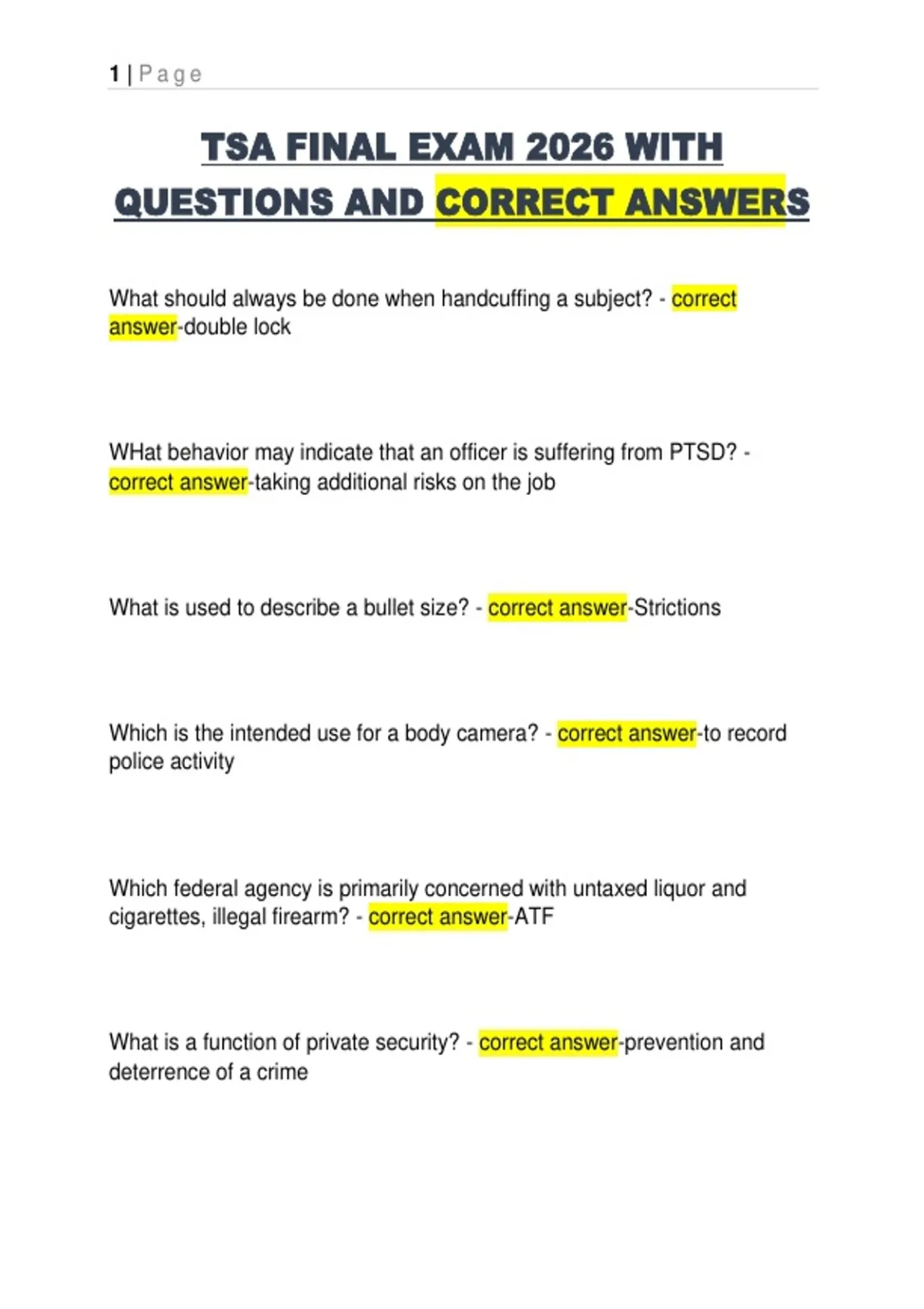 TSA FINAL EXAM 2026 WITH QUESTIONS AND CORRECT ANSWERS