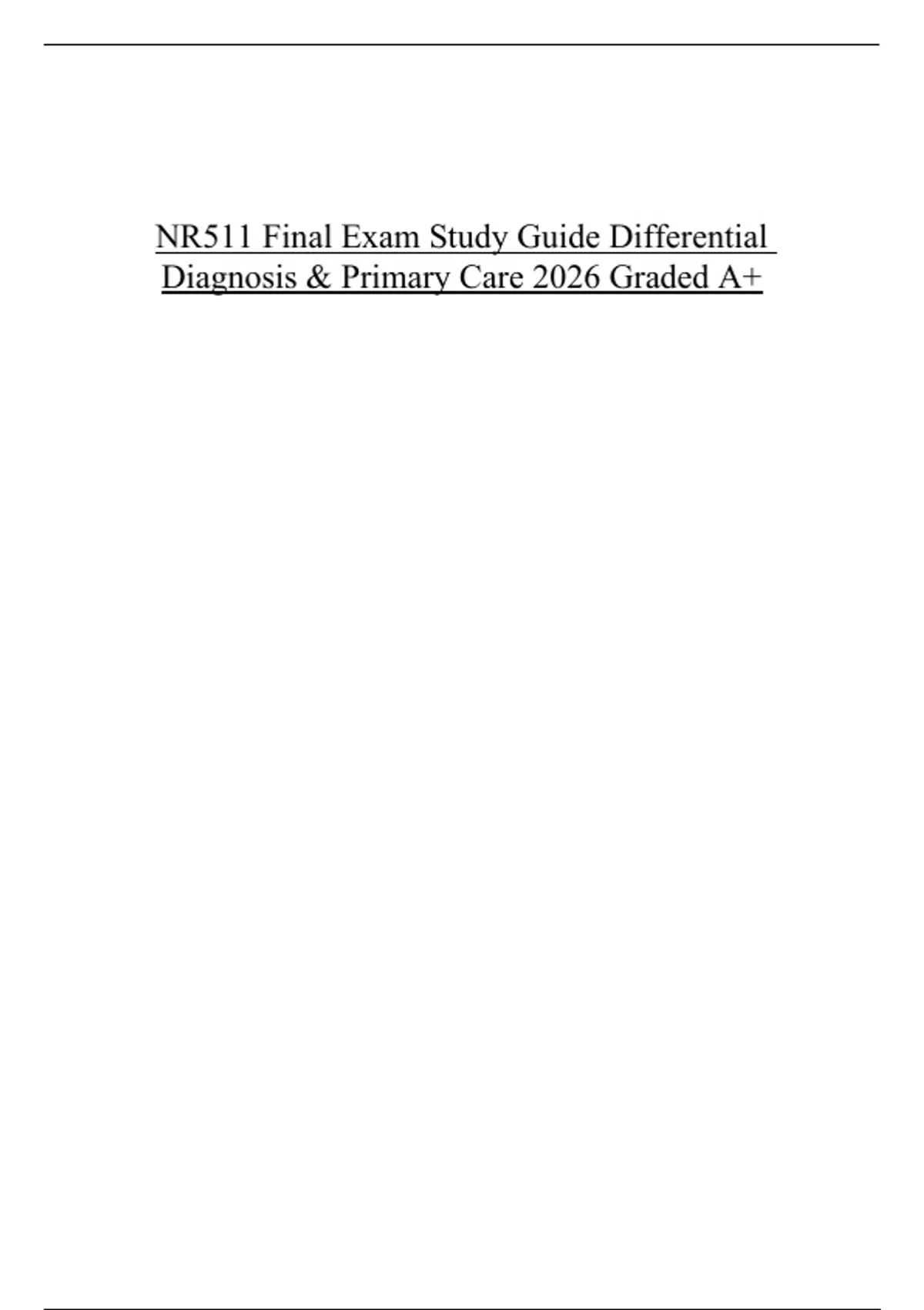 NR511 Final Exam Study Guide Differential Diagnosis & Primary Care 2026 Graded A+