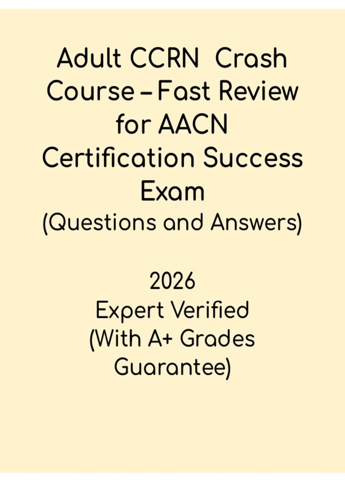 The Adult CCRN 2026 Crash Course – Fast Review for AACN Certification Success PDF is a concise, high-yield revision resource designed for critical care nurses who need a quick yet effective review before the AACN Adult CCRN certification exam. This crash course summarizes essential concepts across all major clinical domains, including cardiovascular, pulmonary, neurological, renal, endocrine, gastrointestinal, hematologic, and multisystem care, along with professional caring and ethical practice. Ideal for last-minute preparation and rapid concept reinforcement, this guide helps candidates sharpen critical knowledge, boost confidence, and maximize success on the 2026 Adult CCRN exam.