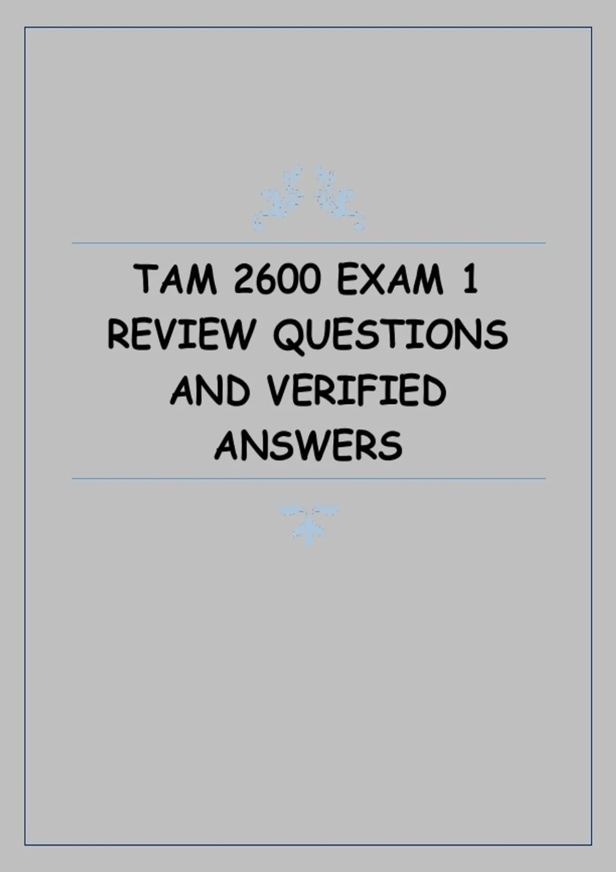 This document contains exam-focused review questions with verified and accurate answers for TAM 2600 Exam 1. It covers key foundational topics addressed in the first part of the course, including core concepts, terminology, analytical approaches, and applied problem-solving relevant to TAM 2600 learning objectives.