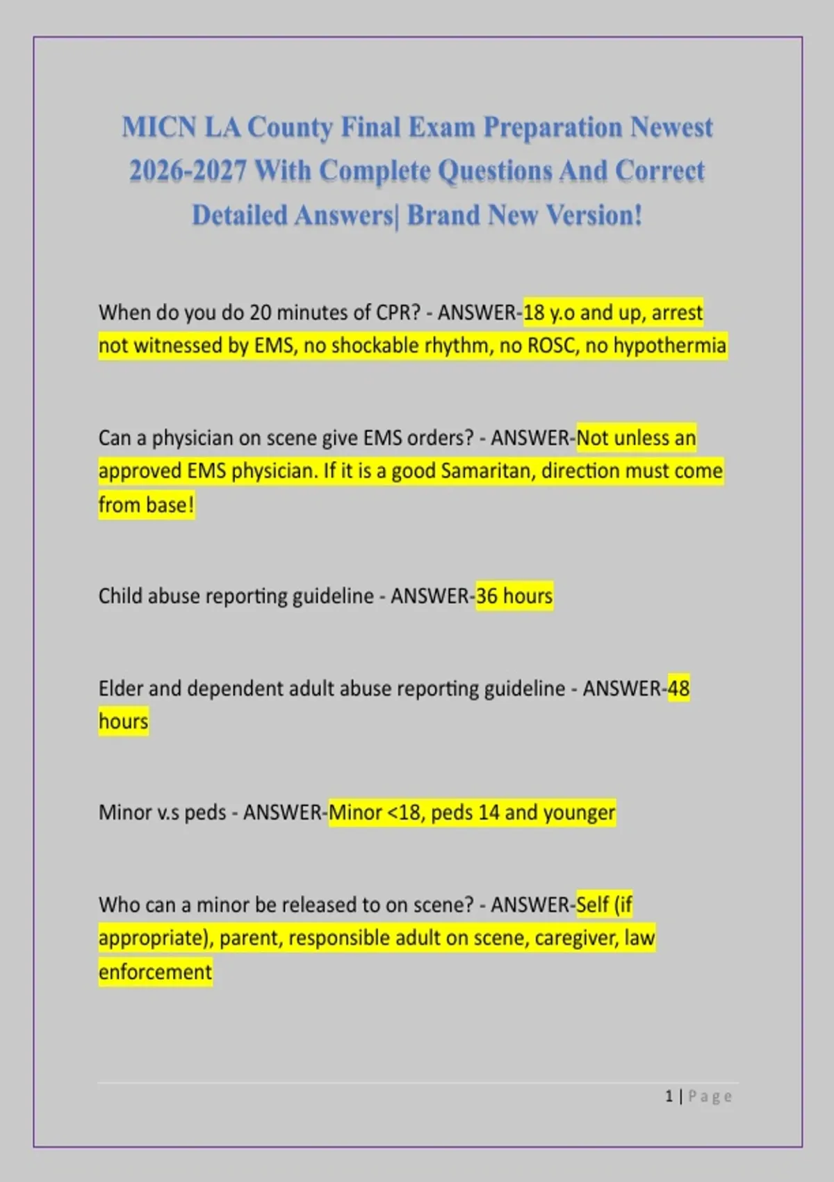MICN LA County Final Exam Preparation Newest With Complete Questions And Correct Detailed Answers| Brand New Version!