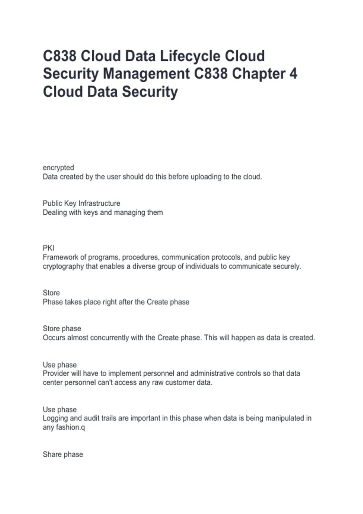 C838 Cloud Data Lifecycle Cloud Security Management C838 Chapter 4Page