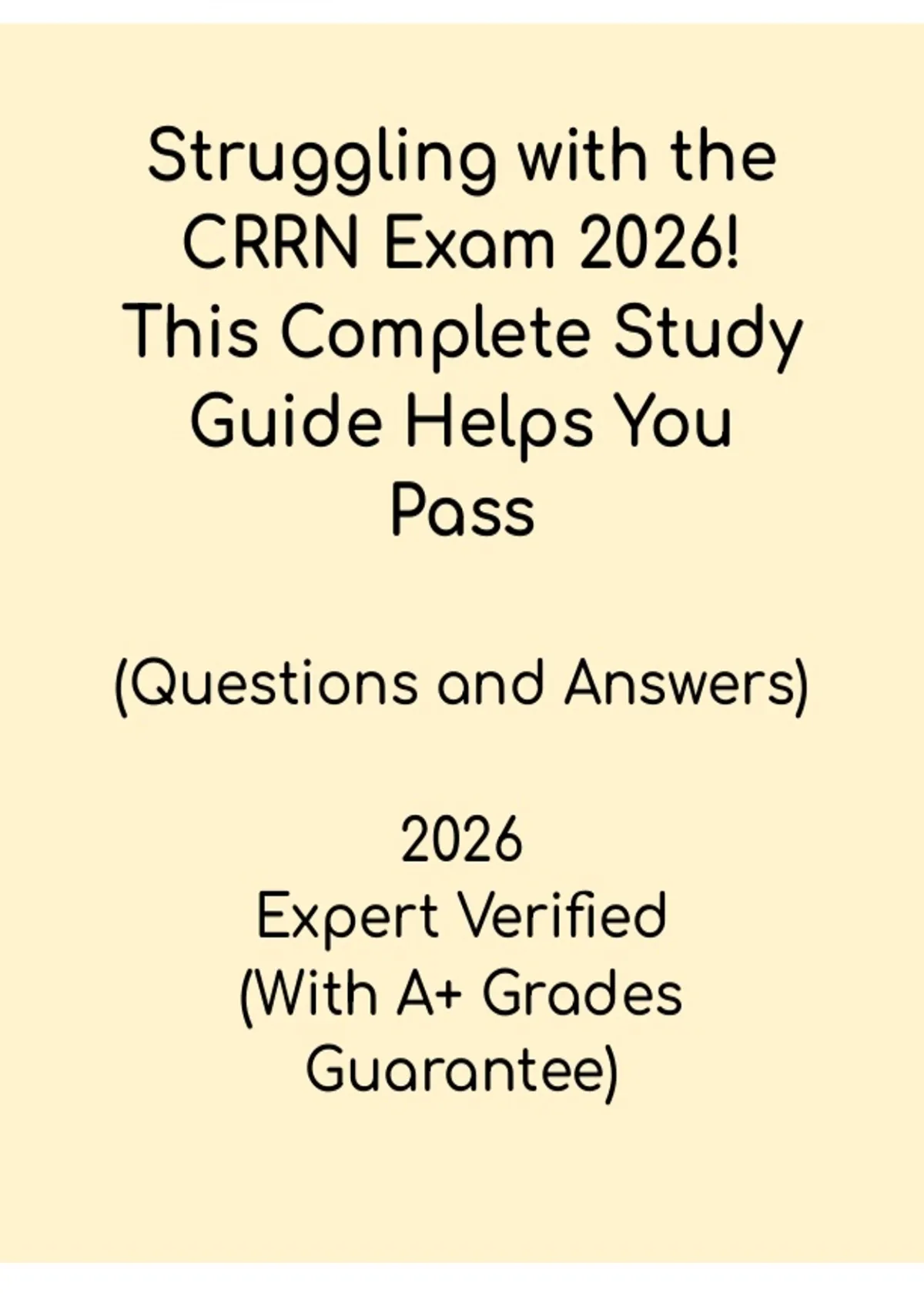 The Struggling with the CRRN Exam 2026! This Complete Study Guide Helps You Pass PDF is a comprehensive and supportive study resource designed for nurses who need structured help preparing for the CRRN certification exam. This complete guide covers essential rehabilitation nursing topics including patient assessment, functional status, musculoskeletal and neurological rehabilitation, wound care, safety and mobility, psychosocial and behavioral health, discharge planning, and professional ethics. Packed with clear explanations, study tips, and practice questions, this guide helps candidates build confidence, improve clinical reasoning, and increase their chances of passing the 2026 CRRN certification exam, even if they feel behind in their preparation.