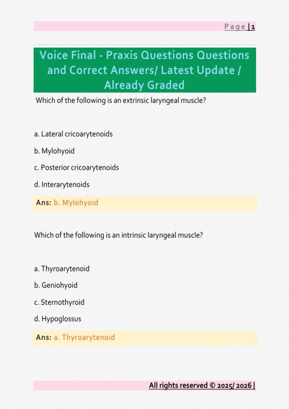Voice Final - Praxis Questions Questions