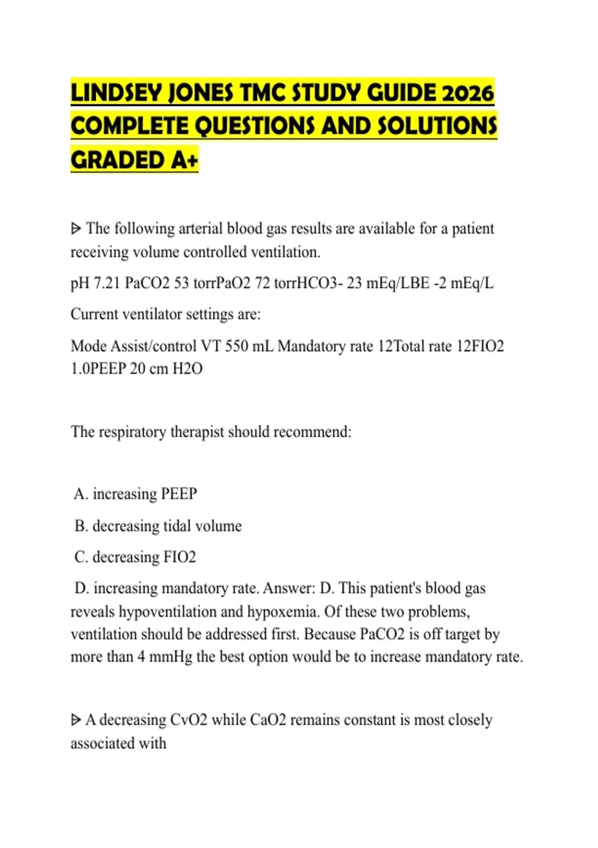 D. increasing mandatory rate. Answer: D. This patient's blood gas