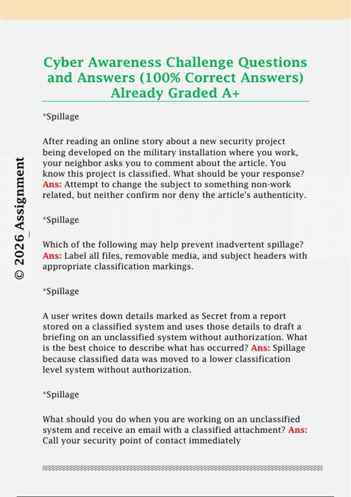 spillage? Ans: Be aware of classification markings and all
