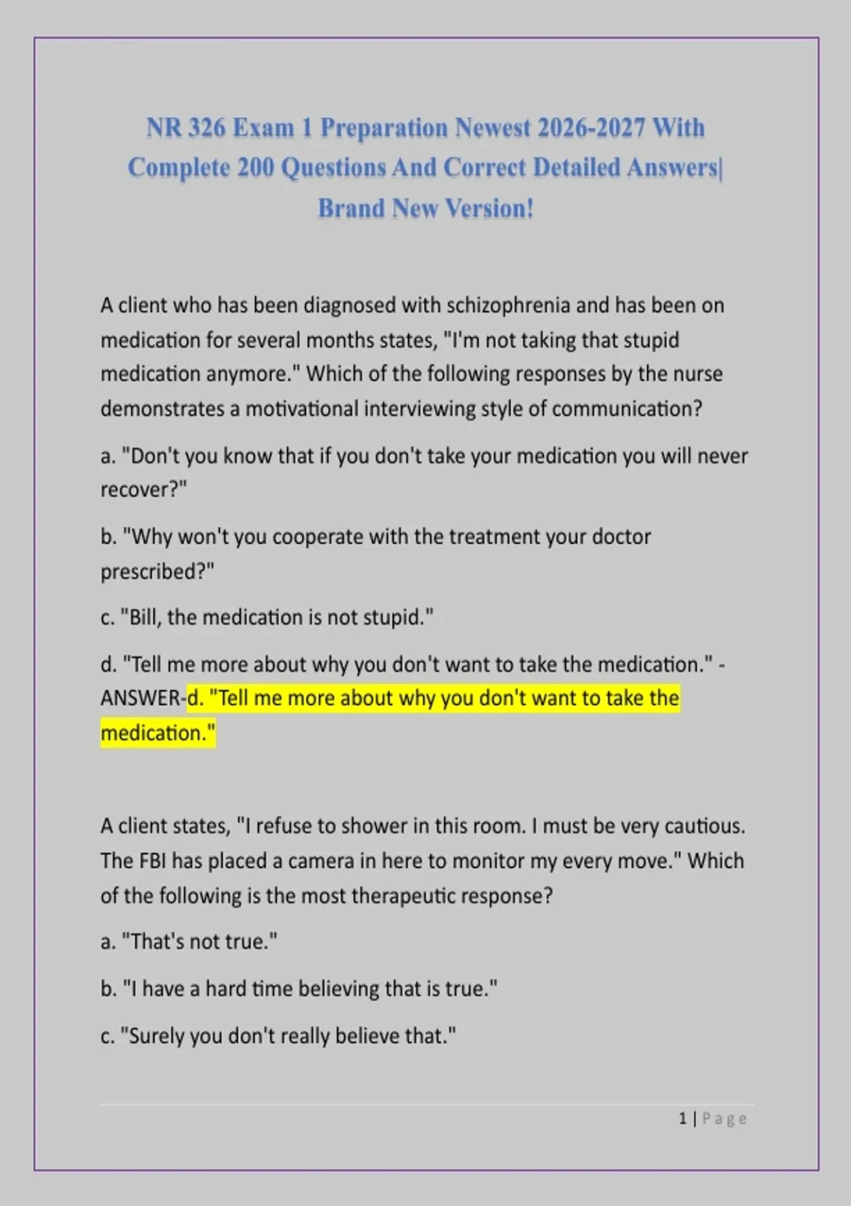 NR 326 Exam 1 Preparation Newest With Complete 200 Questions And Correct Detailed Answers| Brand New Version!