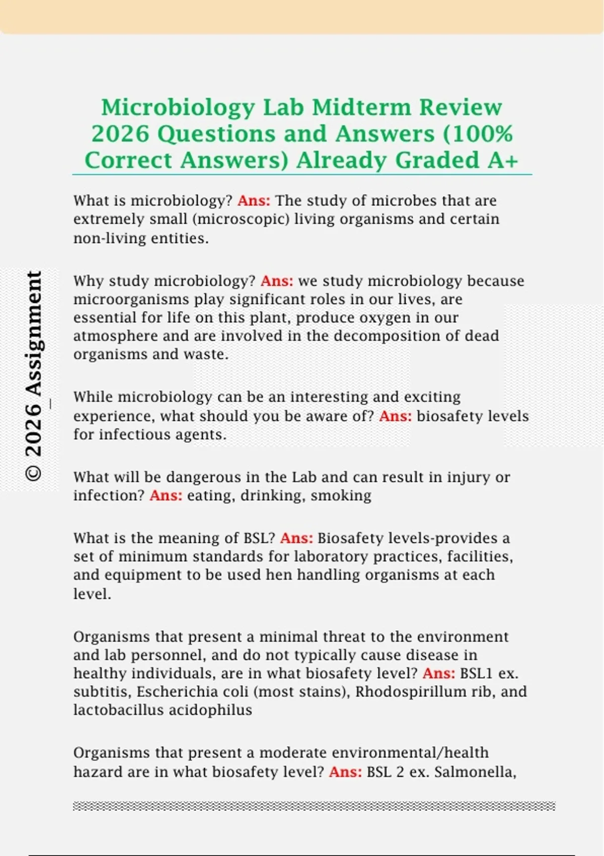 biosafety level? Ans: BSL 4 ex. ebola, marburg and lassa fever