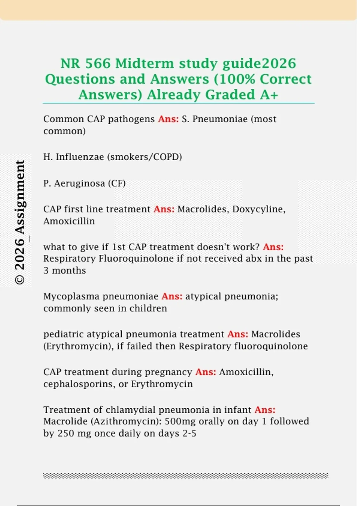 NR 566 Midterm study guide2026 Questions and Answers (100% Correct Answers) Already Graded A+