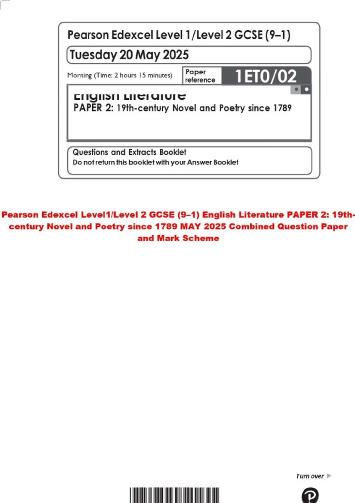 Pearson Edexcel Level1/Level 2 GCSE (9–1) English Literature PAPER 2: 19thcentury Novel and Poetry since 1789 MAY 2025 Combined Question Paper and Mark Scheme