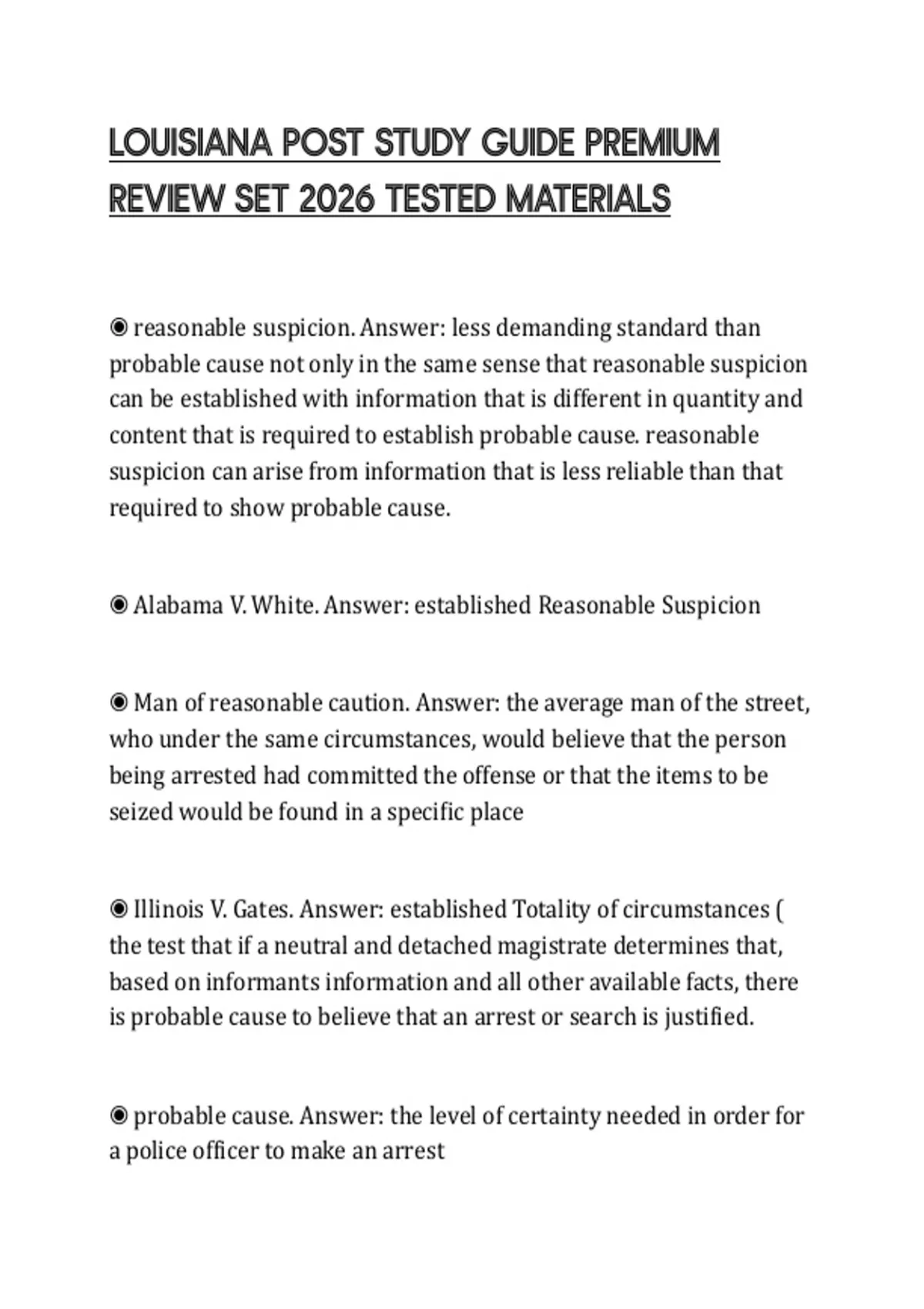 ◉ Alabama V. White. Answer: established Reasonable Suspicion