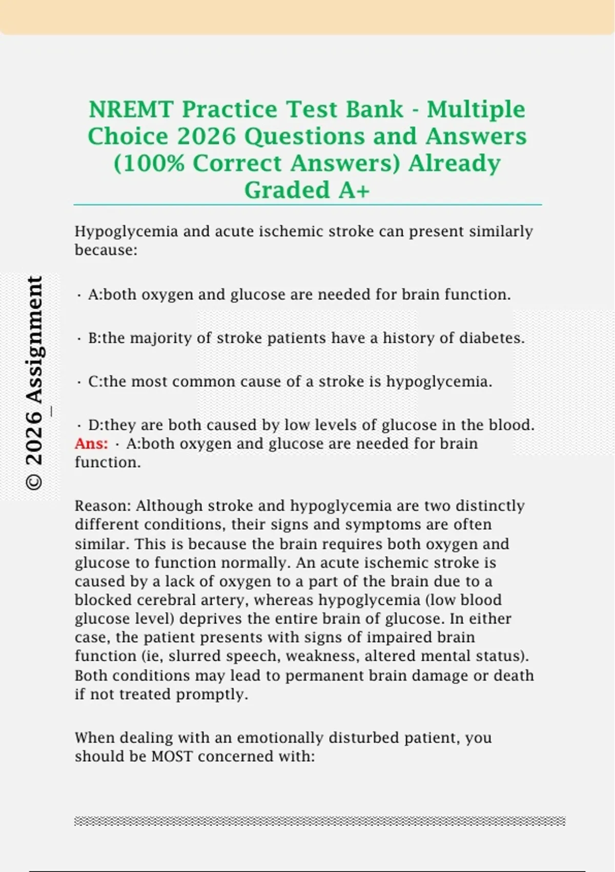 blocked cerebral artery, whereas hypoglycemia (low blood