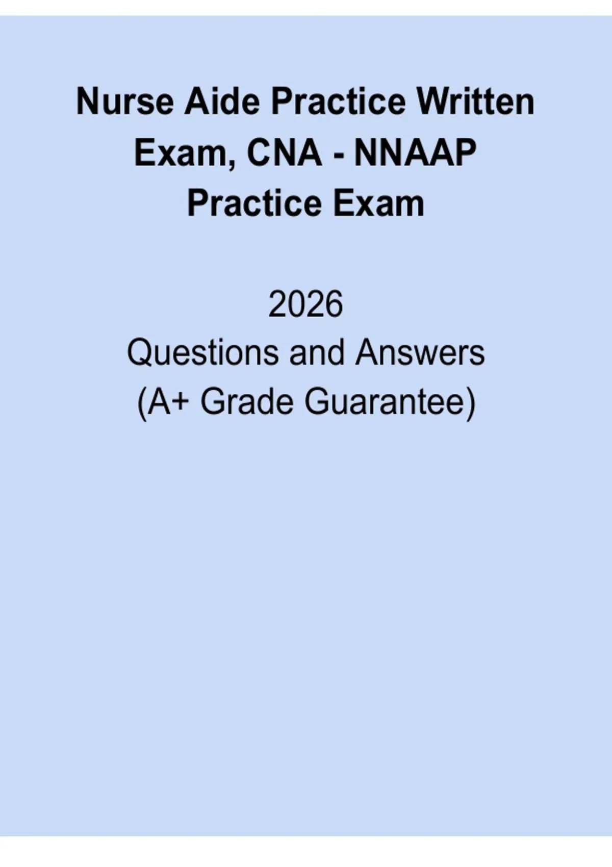 Prepare confidently for the CNA NNAAP Written Exam 2026 with this practice written exam PDF designed to help nurse aide candidates become familiar with the format, question style, and key content areas of the NNAAP exam. Featuring exam-style questions that reinforce essential CNA knowledge, patient care principles, and safety guidelines, this resource supports effective practice and confidence building. Ideal for first-time test takers and CNA students seeking focused written exam preparation, this guide helps improve readiness and exam performance.