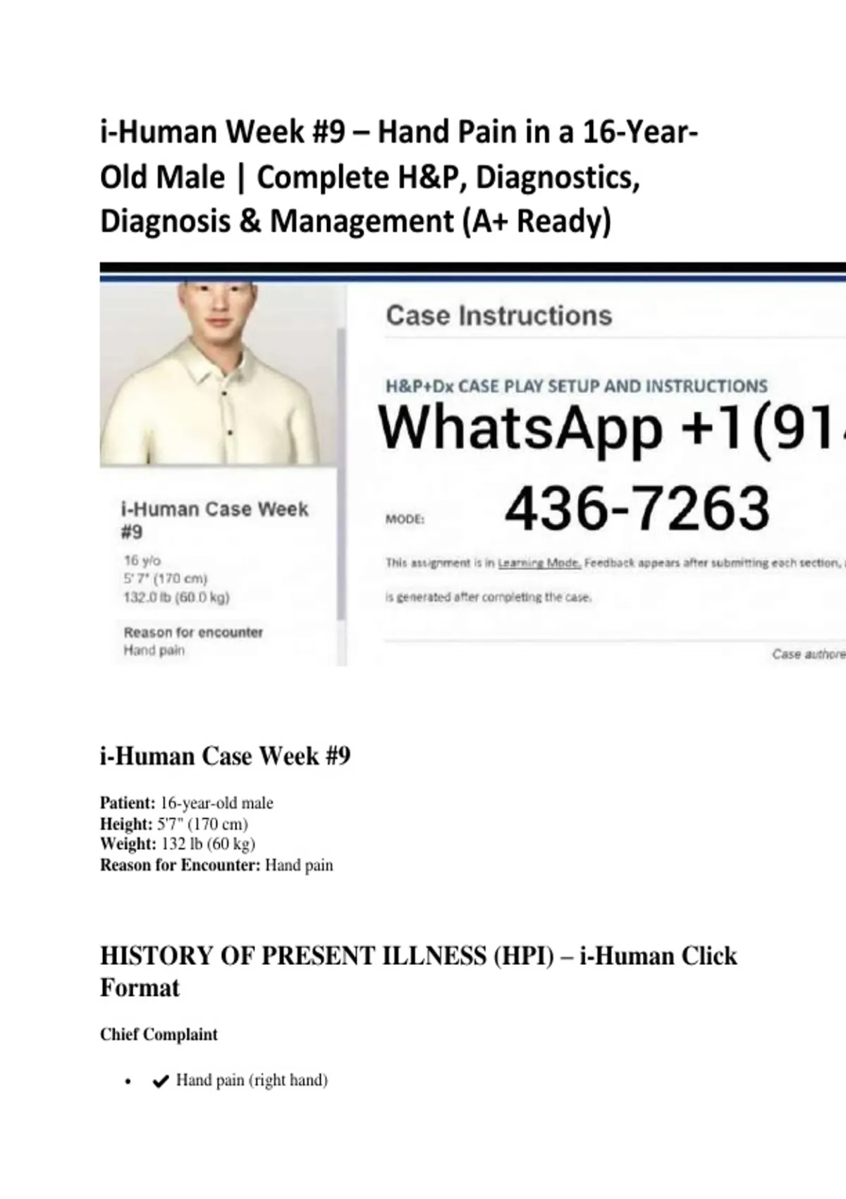 i-Human Week #9 – Hand Pain in a 16-Year-Old Male | Complete H&P, Diagnostics, Diagnosis & Management (A+ Ready)