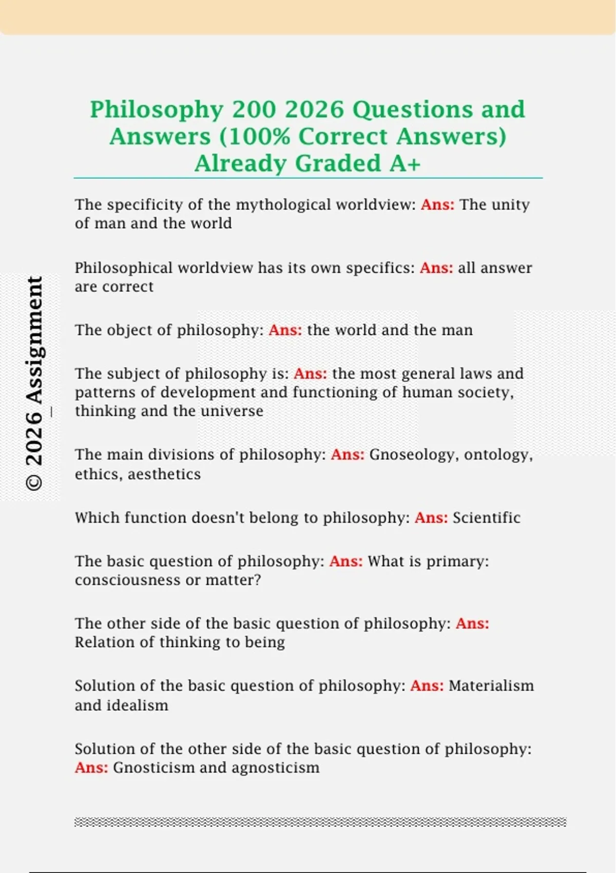 Philosophy 200 2026 Questions and