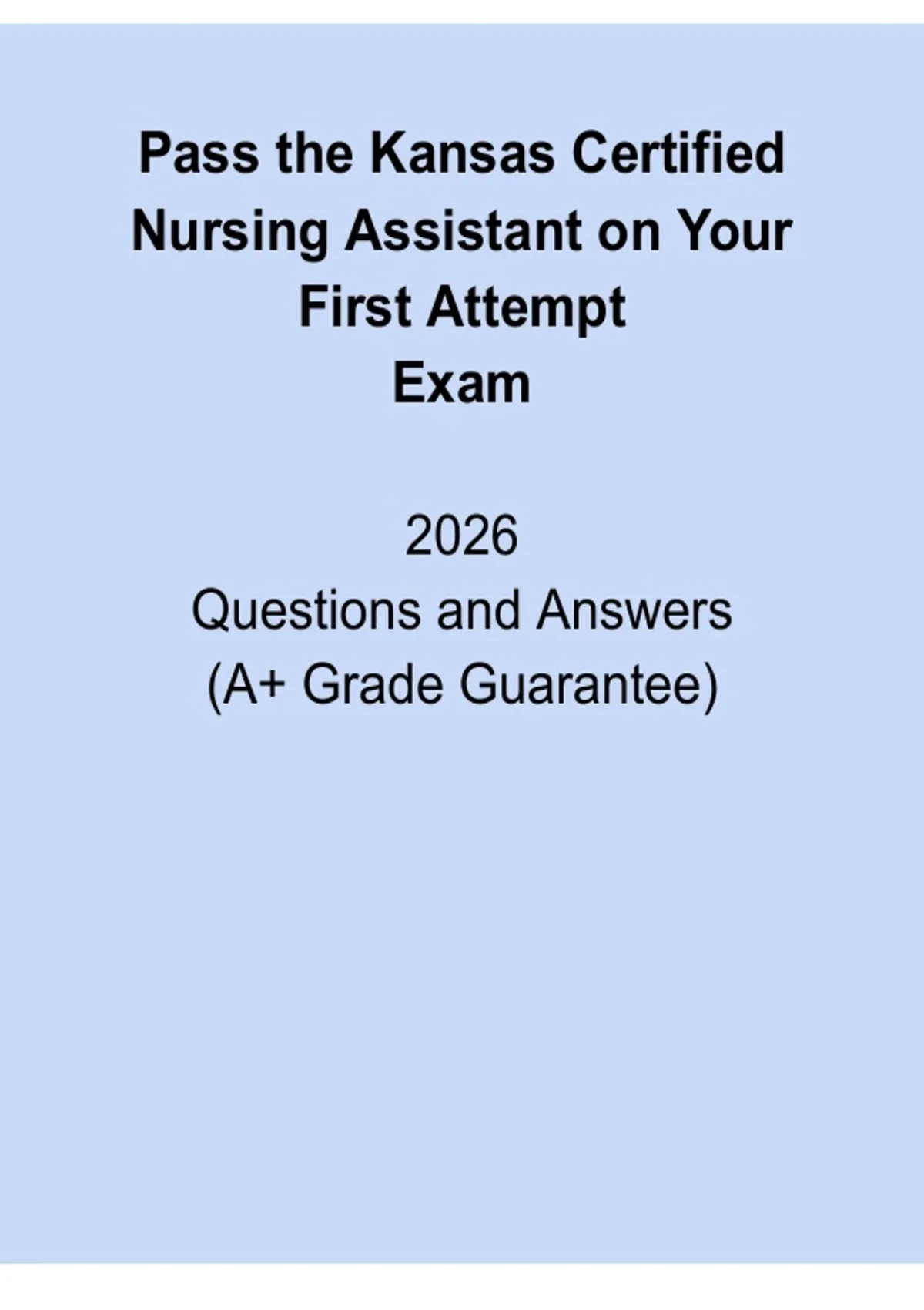 Prepare confidently for the Kansas Certified Nursing Assistant (CNA) Exam 2026 with this exam-focused study guide PDF designed to help you pass on your first attempt. This resource covers essential nursing assistant concepts, patient care skills, safety guidelines, and exam-relevant topics aligned with Kansas state exam expectations. Ideal for first-time test takers and CNA students in Kansas, this guide supports efficient preparation, builds confidence, and improves your chances of success on exam day.