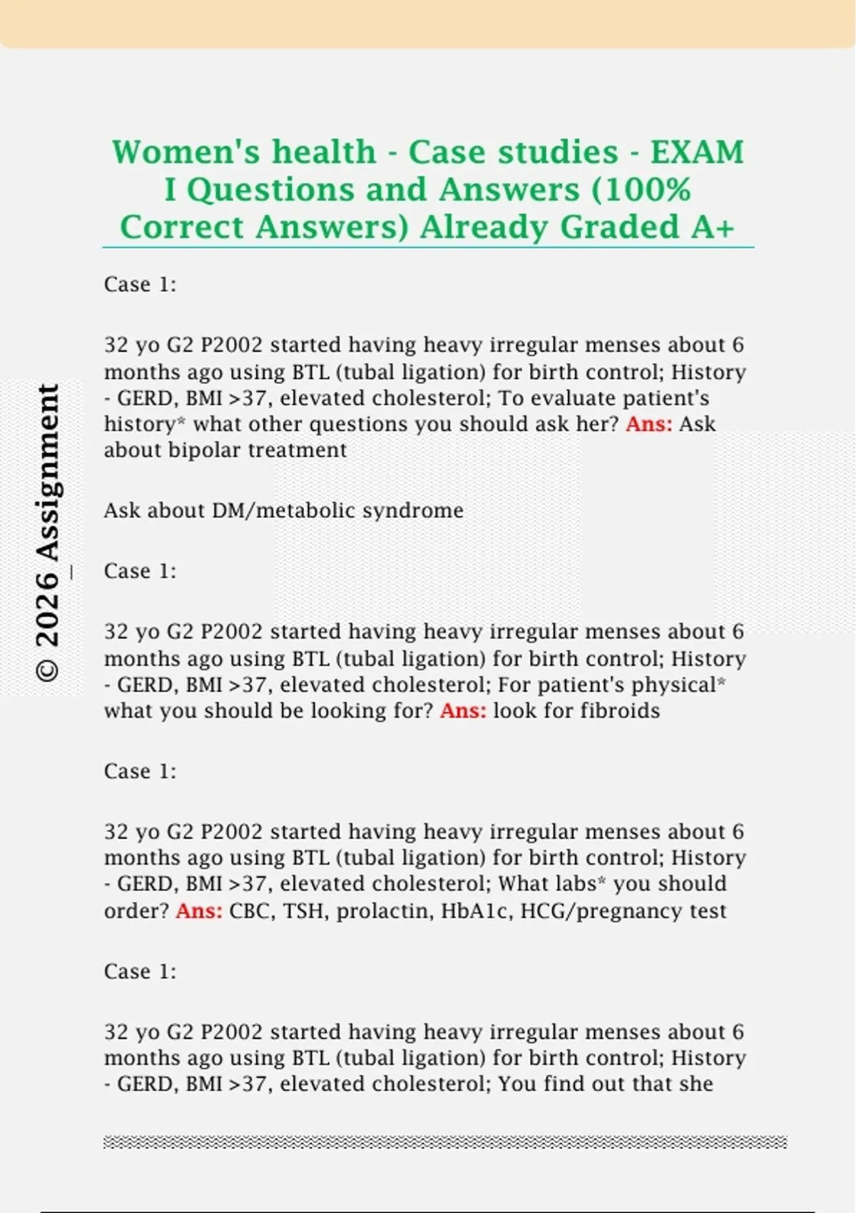 - GERD, BMI >37, elevated cholesterol; You find out that she