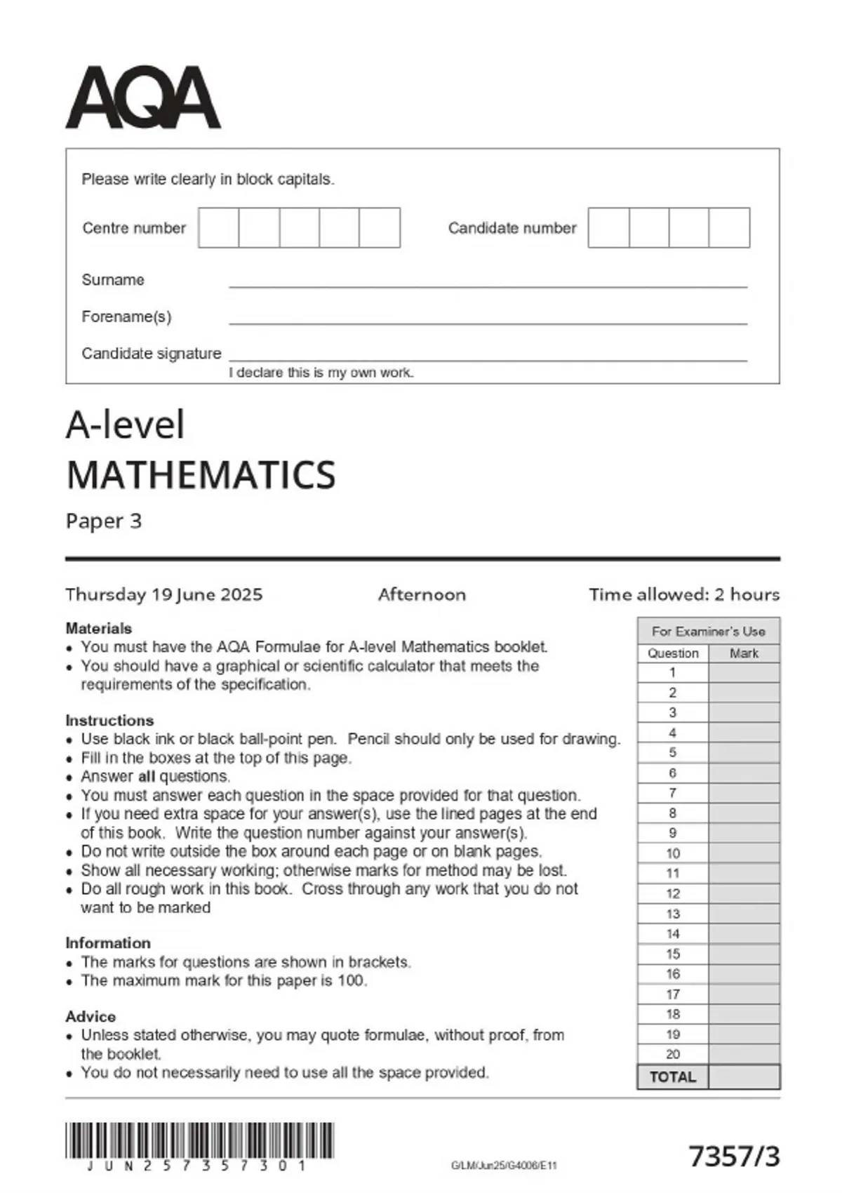 aqa 2025 mathematics a level 73573 paper 3