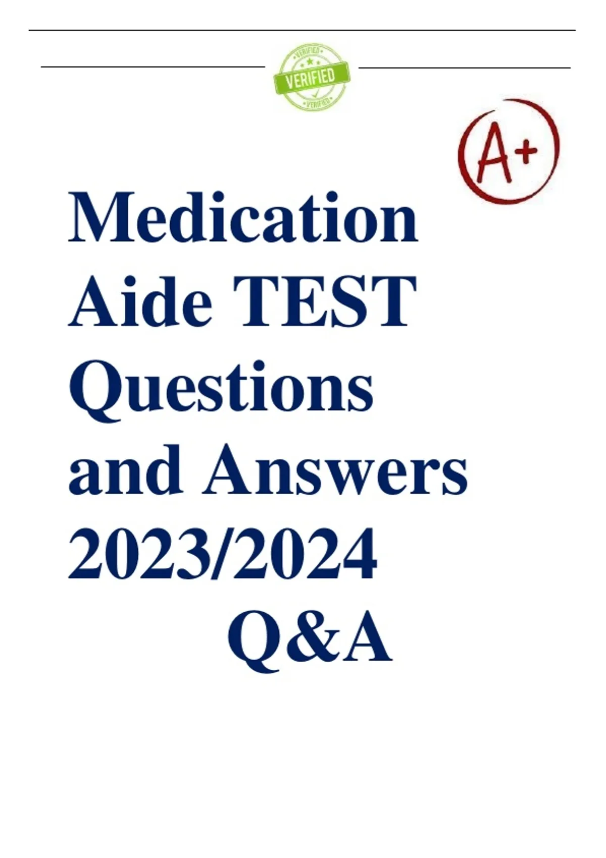 Medication Aide TEST Questions and Answers 2023/2024 Q&A