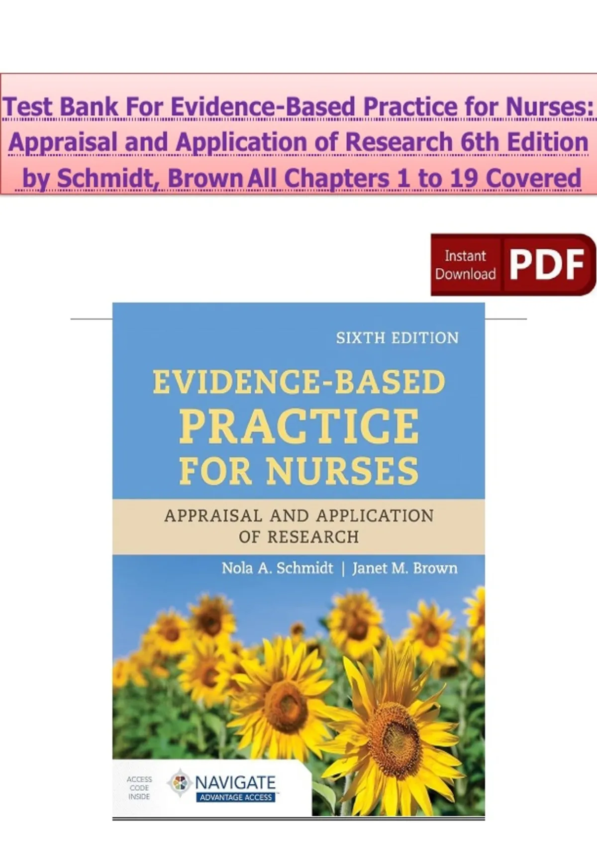 Test Bank- Evidence-Based Practice for Nurses: Appraisal and Application of Research 6th Edition By Schmidt Brown|| Newest Update Test Bank- Evidence-Based Practice for Nurses: Appraisal and Application of Research 6th Edition By Schmidt Brown|| Newest Update Test Bank- Evidence-Based Practice for Nurses: Appraisal and Application of Research 6th Edition By Schmidt Brown|| Newest Update