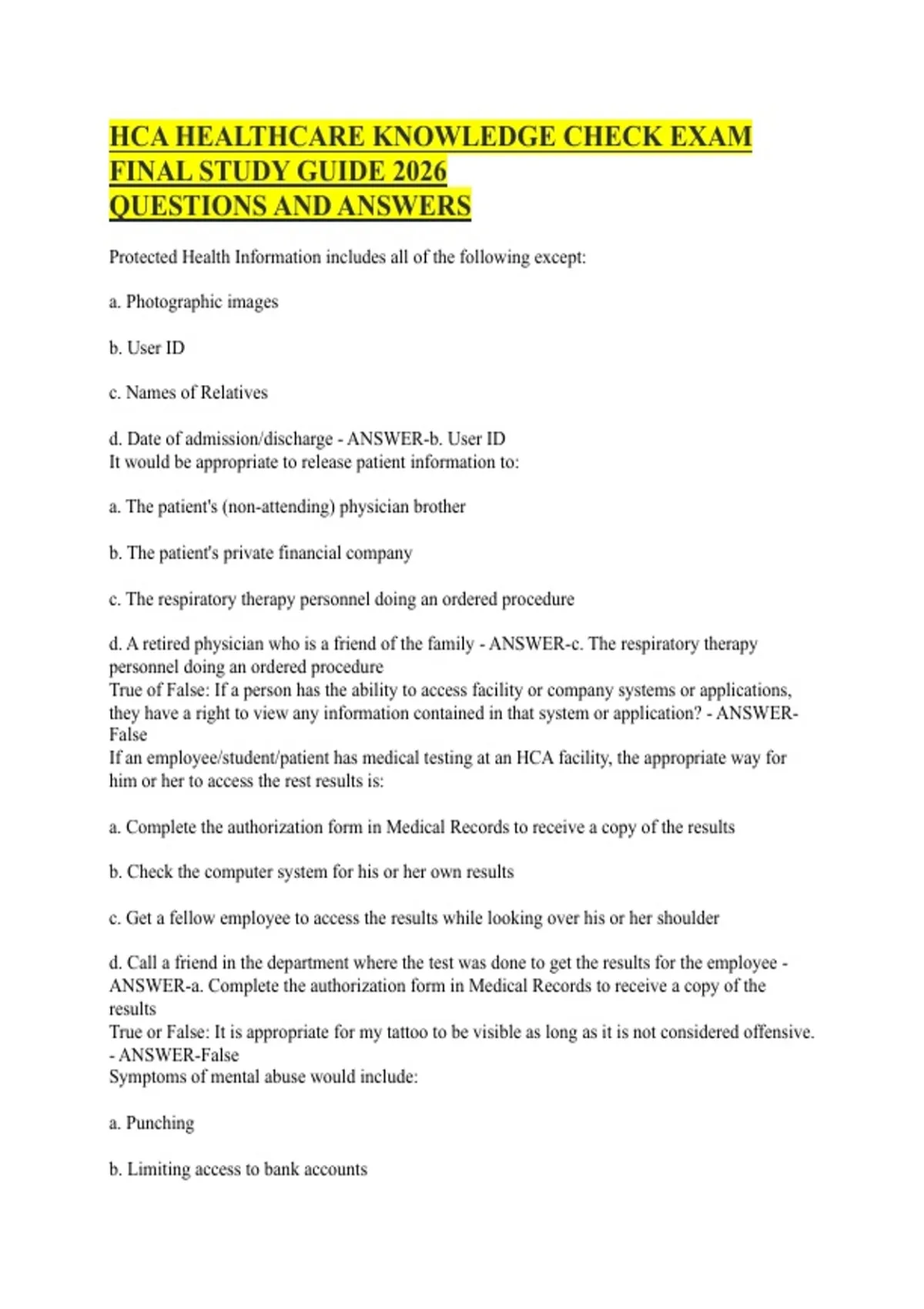 HCA HEALTHCARE KNOWLEDGE CHECK EXAM