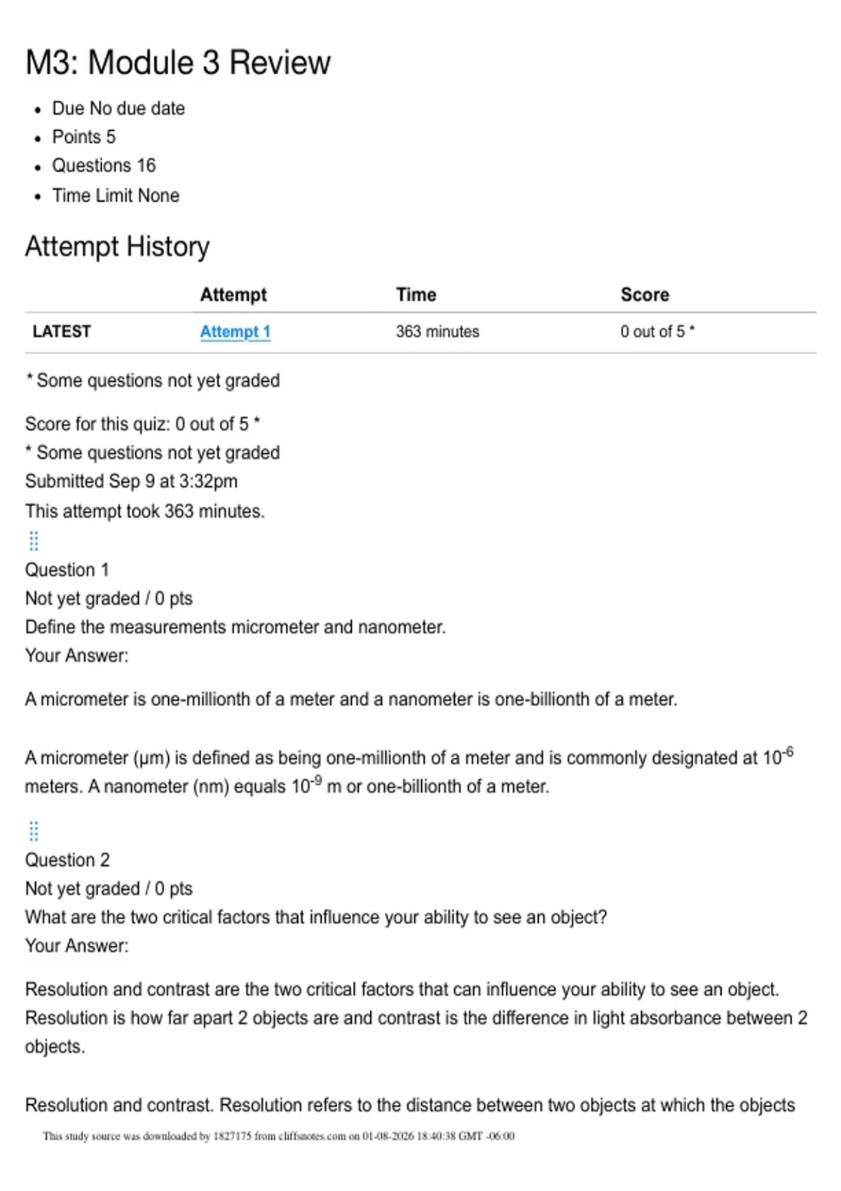 Access the 2026 M3 Module 3 Review – Essential Microbiology With Lab by Milligan 02A with 100% verified correct answers. Includes fully graded A+ solutions and step-by-step explanations to help students master microbiology concepts, complete module reviews accurately, and excel in coursework. Ideal for study, exam preparation, and achieving top grades.