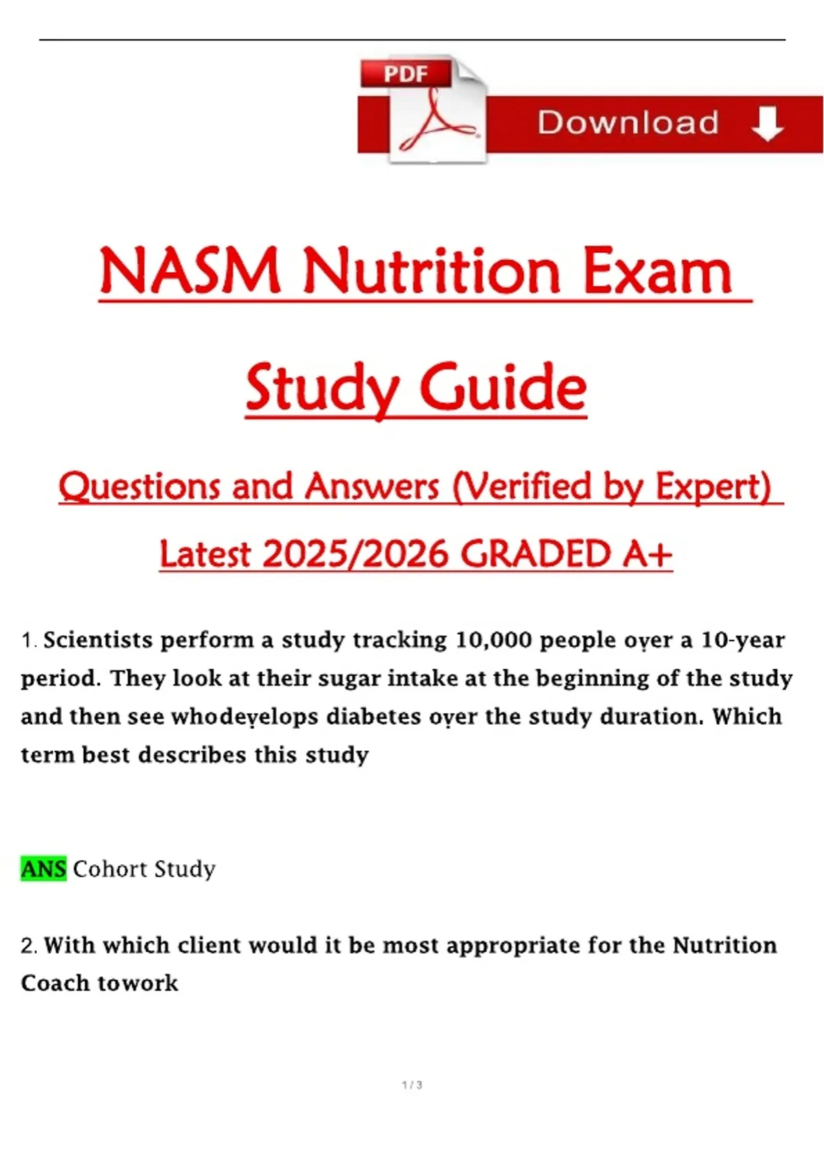 NASM Nutrition Exam Study Guide Questions and Answers (Verified by Expert) Latest 2025/2026 GRADED A+