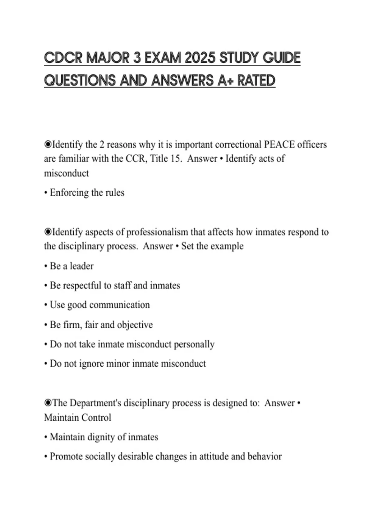 CDCR MAJOR 3 EXAM 2025 STUDY GUIDE