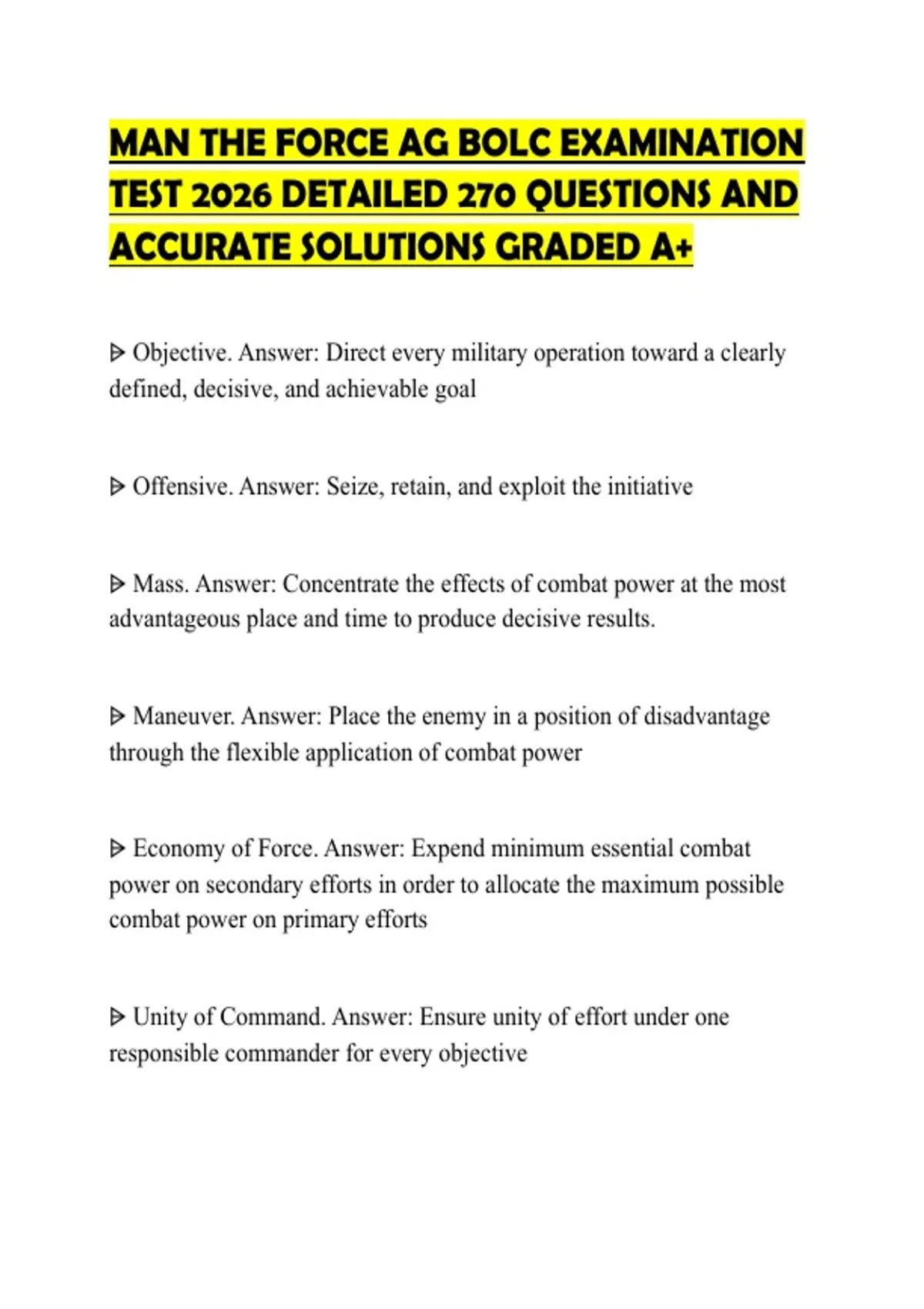 ⩥ Unity of Command. Answer: Ensure unity of effort under one