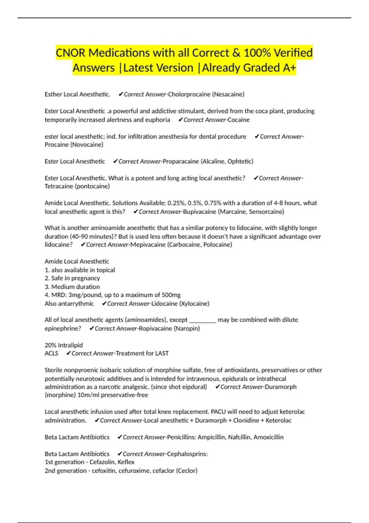 CNOR Medications with all Correct & 100% Verified Answers |Latest Version |Already Graded A+