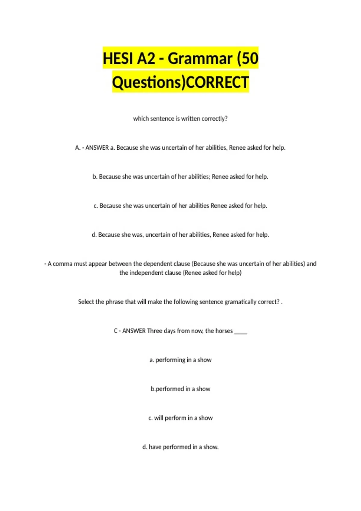 , Page 3 of 24 HESI A2 - Grammar (50 Questions)CORRECT.pdf HESI A2 - Grammar (50 Questions)CORRECT.pdf
