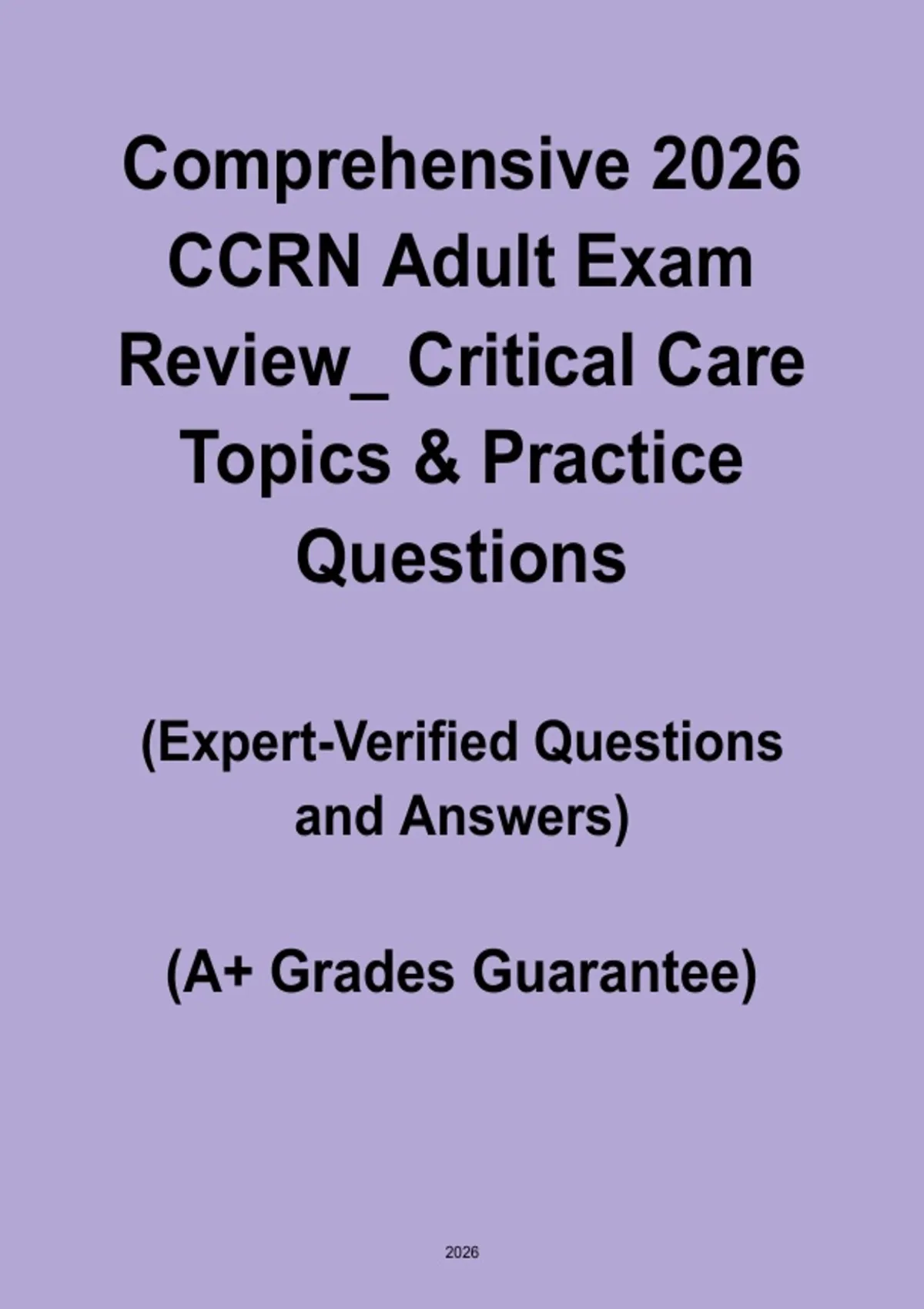 The Comprehensive 2026 CCRN Adult Exam Review – Critical Care Topics & Practice is a complete preparation resource designed for nurses aiming to pass the Adult CCRN certification exam. Covering all high-yield critical care topics—including cardiac, pulmonary, neurological, endocrine, renal, hematology, shock, and multi-system critical care—this guide combines concise content review with practice questions that mirror the real exam. Ideal for graduate nurses and exam retakers, it strengthens clinical knowledge, enhances test-taking strategies, and builds confidence for successfully passing the CCRN Adult exam in 2026.