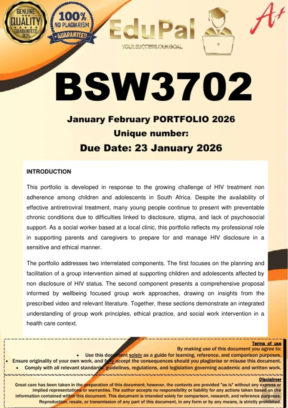 Ensure originality of your own work, and fully accept the consequences should you plagiarise or misuse this document.