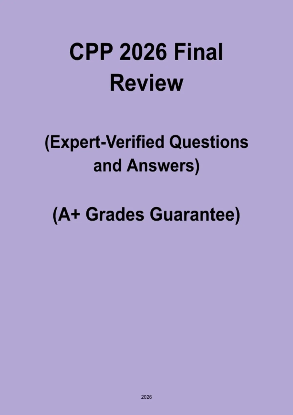 The CPP 2026 Final Review is a focused, high-yield study resource designed for security professionals preparing for the Certified Protection Professional (CPP) exam. Covering all essential CPP domains—including security management, risk assessment, investigations, physical security, emergency preparedness, and legal/regulatory topics—this guide provides concise explanations, practice questions, and test-taking strategies. Ideal for final-stage review and exam readiness, it helps candidates reinforce knowledge, identify weak areas, and build confidence to successfully pass the CPP certification exam in 2026.