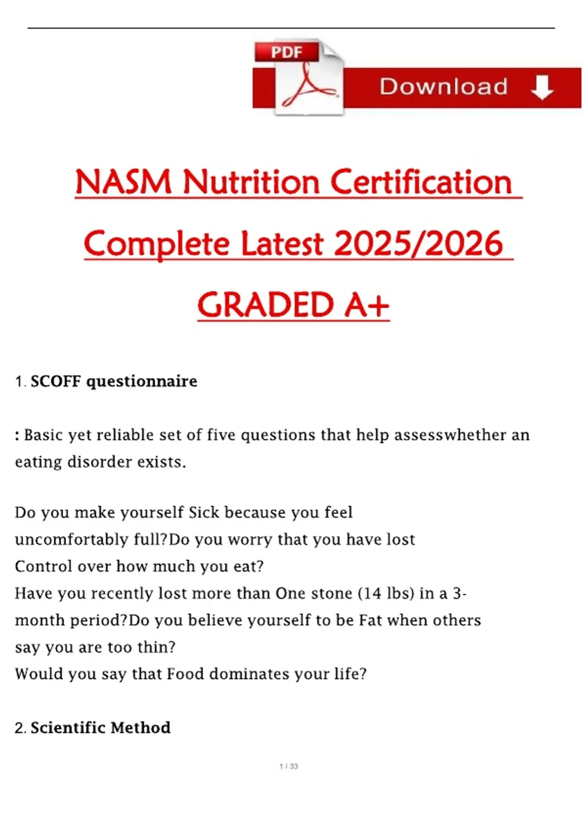 NASM Nutrition Certification Complete Latest 2025/2026 GRADED A+
