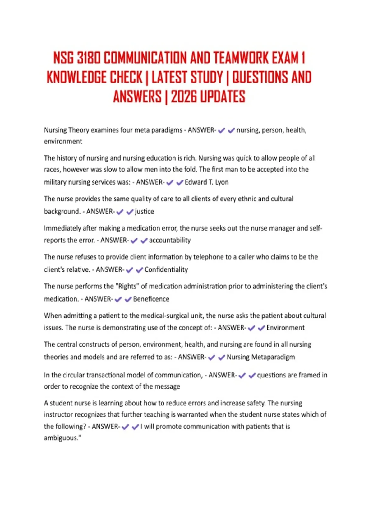 ANSWERS | 2026 UPDATES