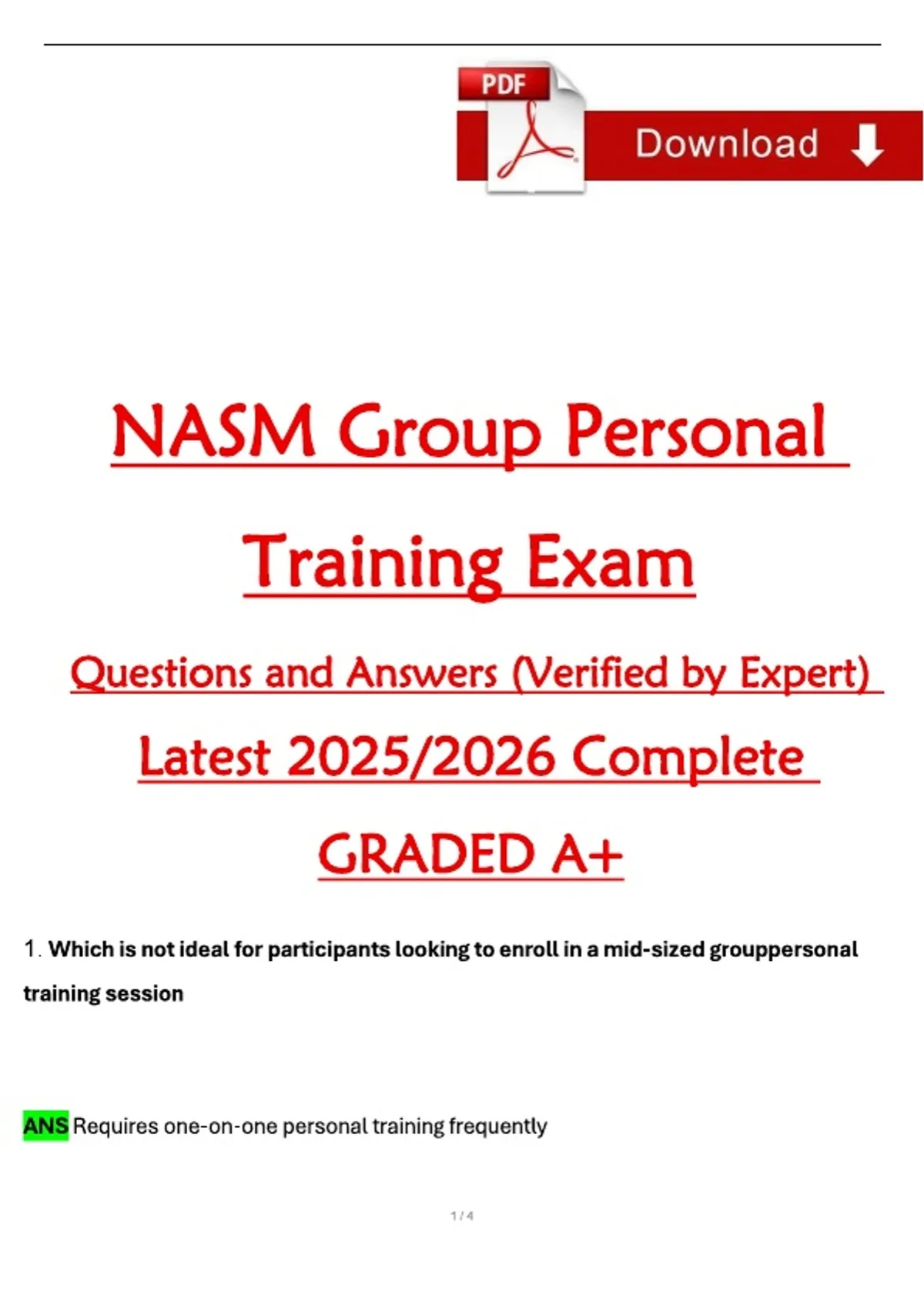 NASM Group Personal Training Exam Questions and Answers (Verified by Expert) Latest 2025/2026 Complete GRADED A+