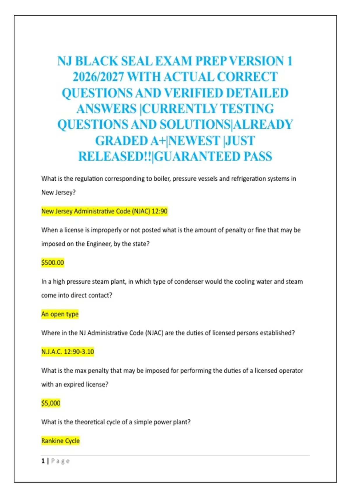 NJ BLACK SEAL EXAM PREP VERSION 1 2026/2027 WITH ACTUAL CORRECT QUESTIONS AND VERIFIED DETAILED ANSWERS |CURRENTLY TESTING QUESTIONS AND SOLUTIONS|ALREADY GRADED A+|NEWEST |JUST RELEASED!!|GUARANTEED PASS