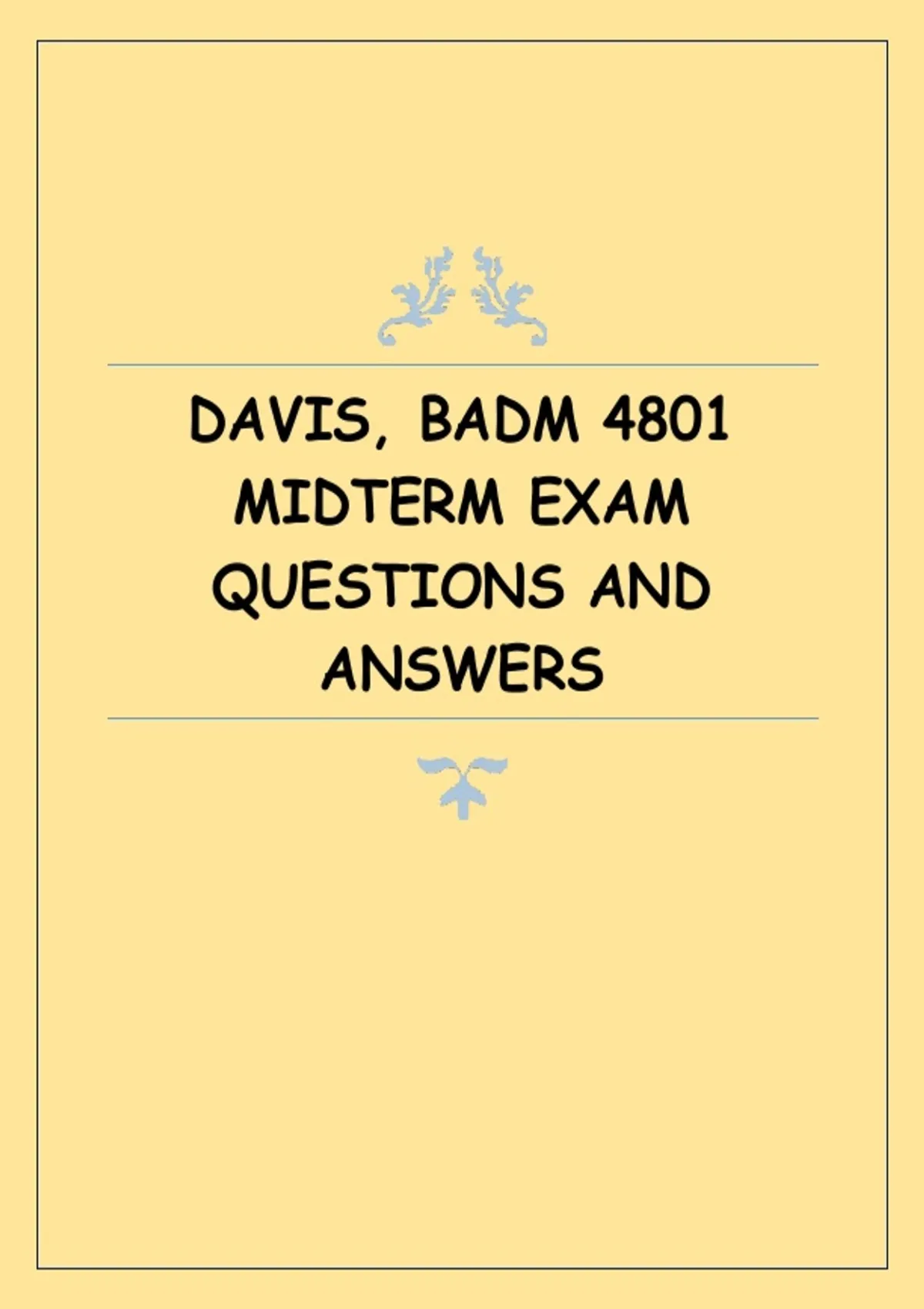 This document contains midterm exam questions with verified and accurate answers for the BADM 4801 course taught by Davis. It covers key business administration concepts including strategic analysis, competitive positioning, managerial decision-making, organizational performance, and applied business frameworks commonly assessed in the midterm exam.