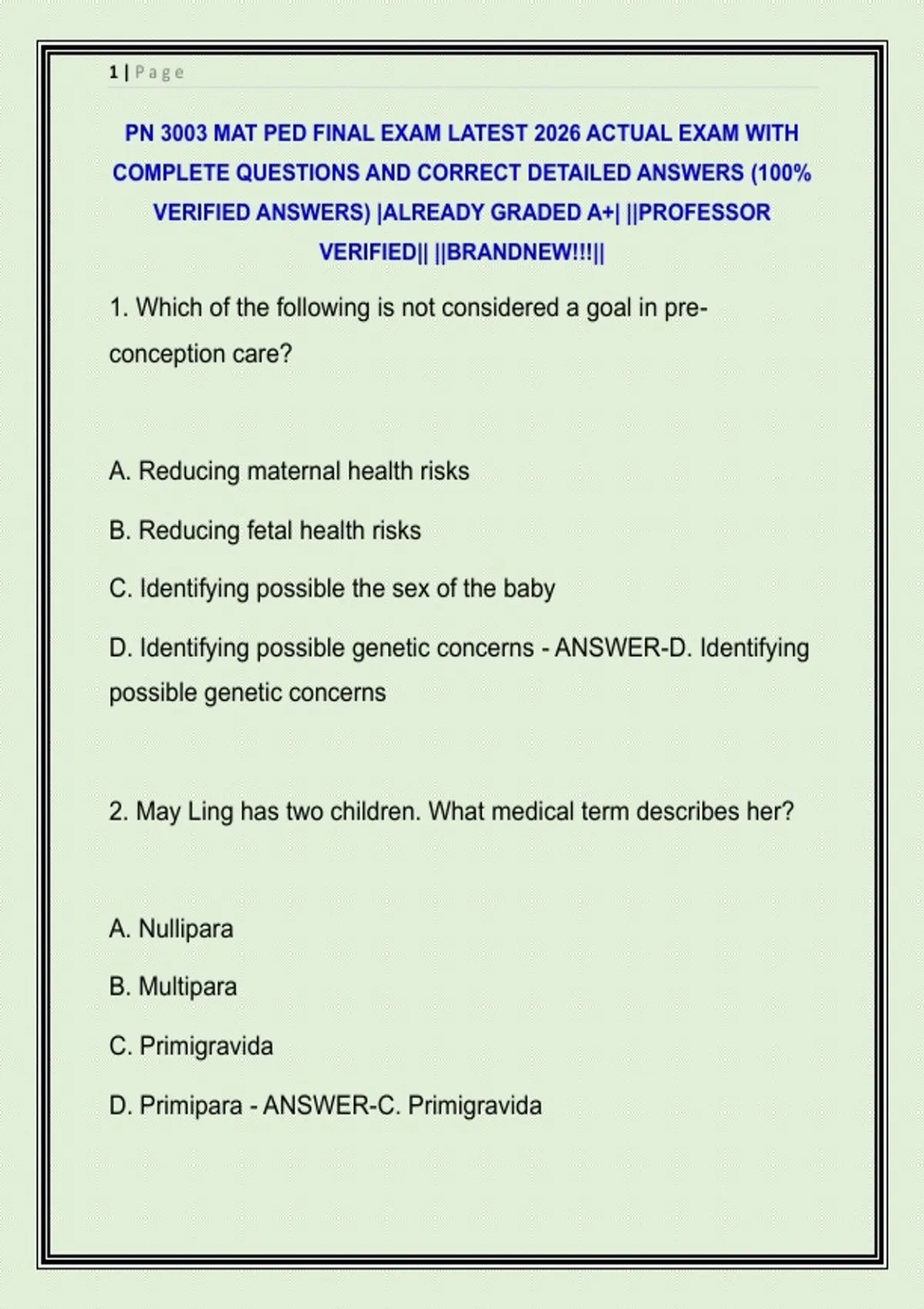 PN 3003 MAT PED FINAL EXAM LATEST 2026 ACTUAL EXAM WITH COMPLETE QUESTIONS AND CORRECT DETAILED ANSWERS (100% VERIFIED ANSWERS) |ALREADY GRADED A+| ||PROFESSOR VERIFIED|| ||BRANDNEW!!!||