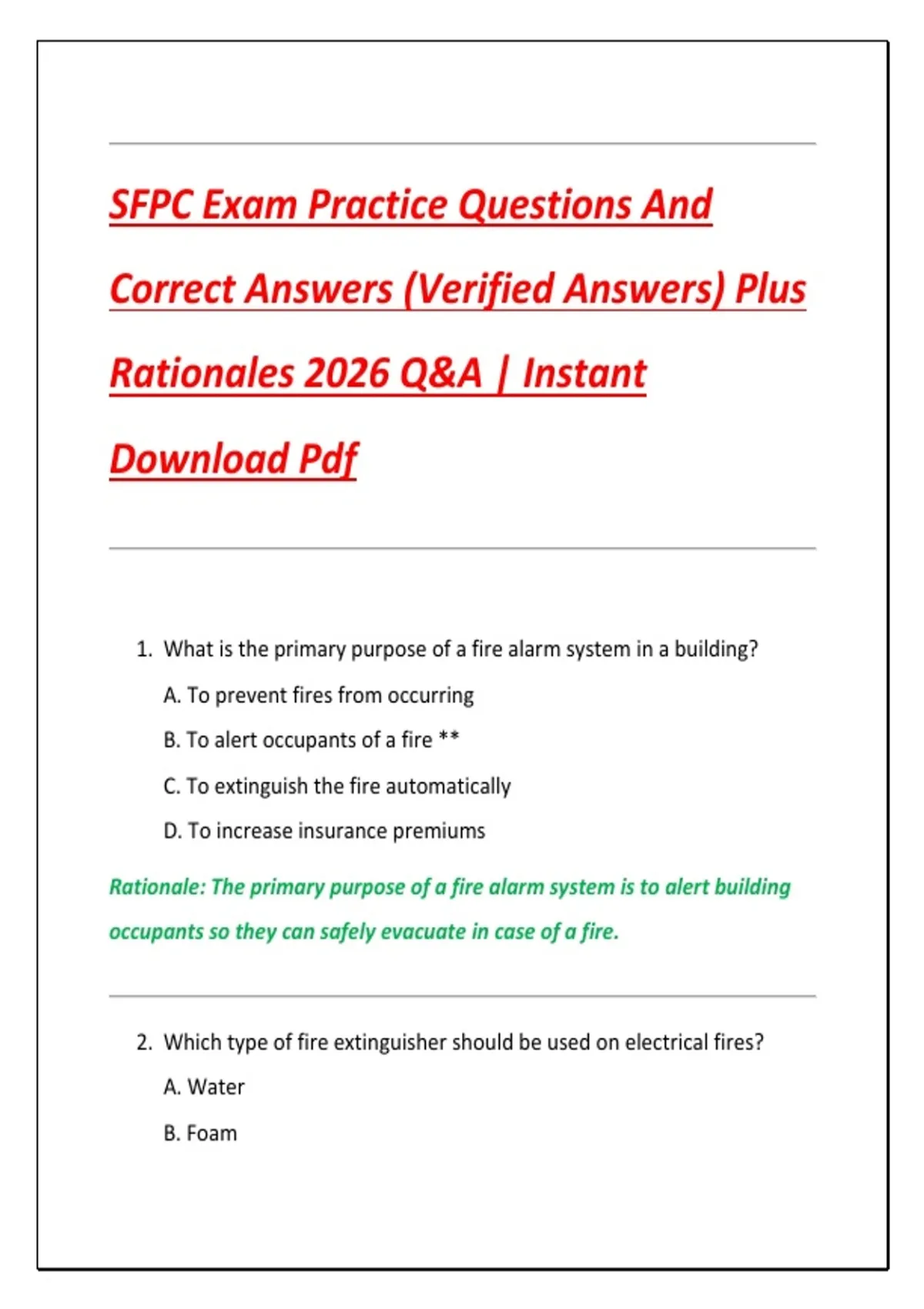 SFPC Exam Practice Questions And Correct Answers (Verified Answers) Plus Rationales 2026 Q&A | Instant Download Pdf