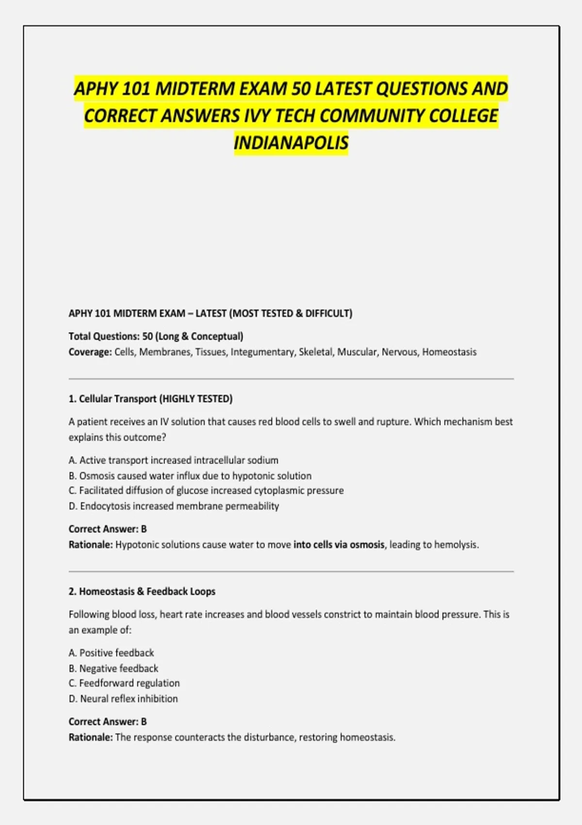 APHY 101 MIDTERM EXAM – LATEST (MOST TESTED & DIFFICULT)
