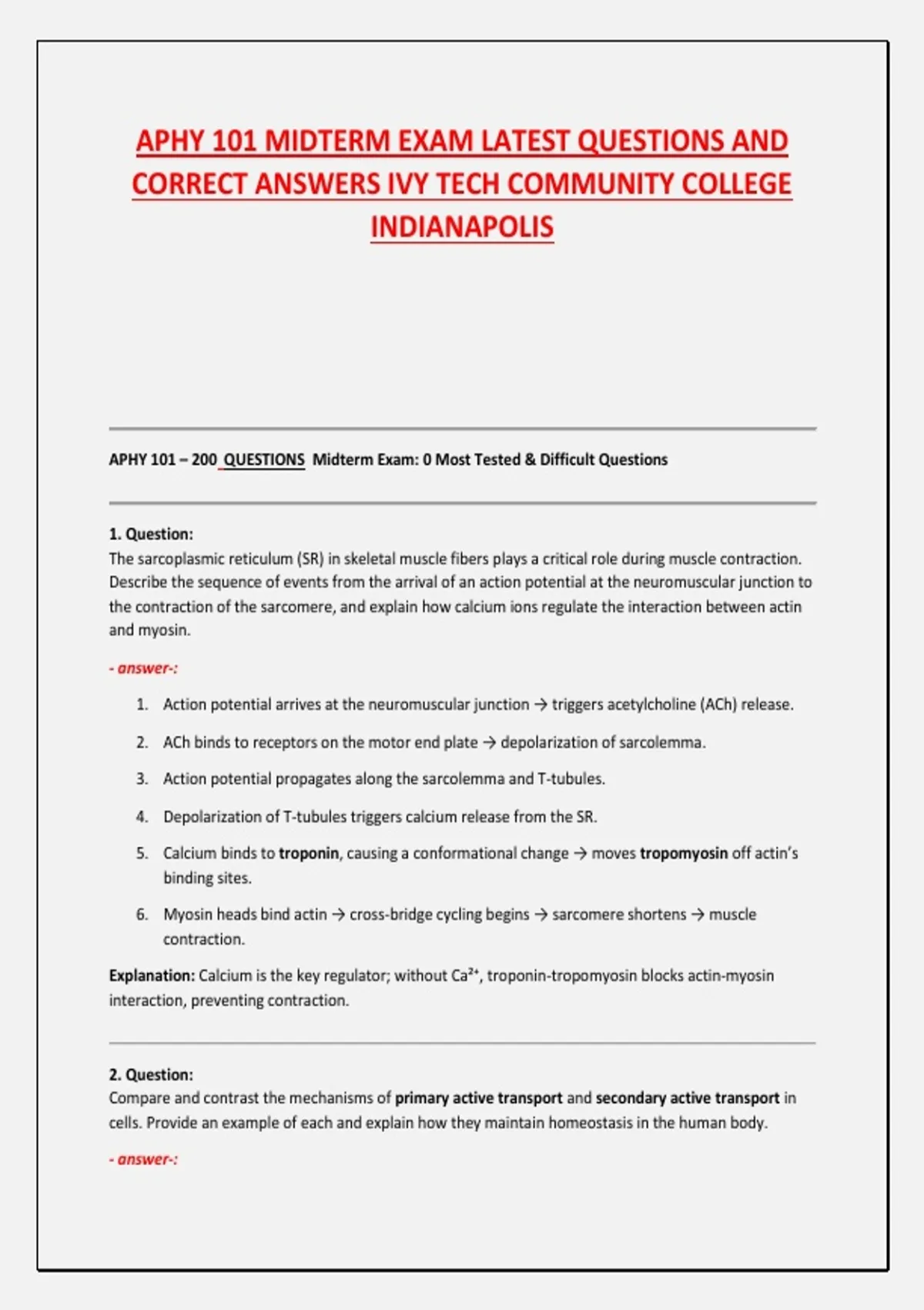 APHY 101 MIDTERM EXAM LATEST QUESTIONS AND CORRECT ANSWERS IVY TECH COMMUNITY COLLEGE INDIANAPOLIS
