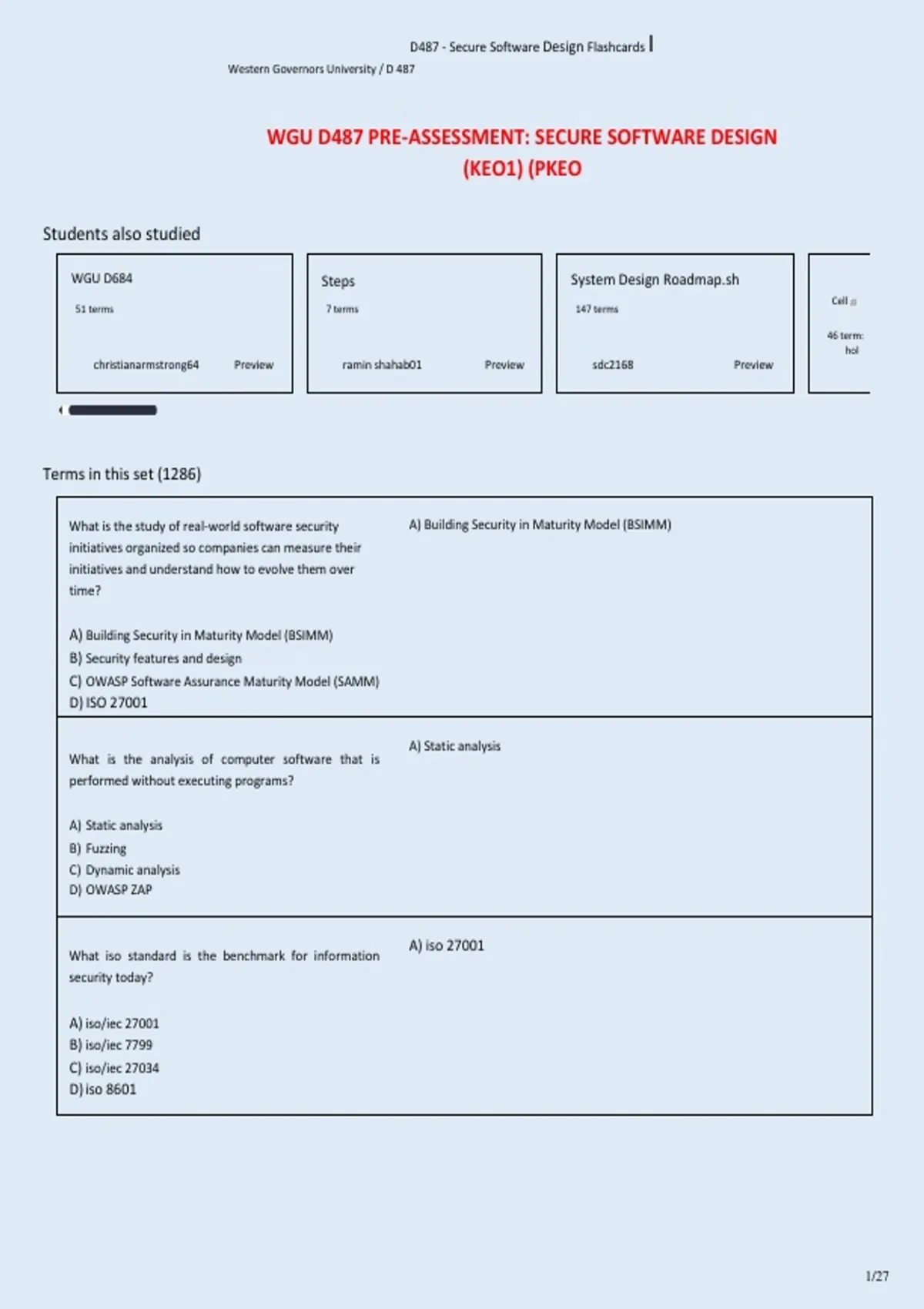 WGU D487 PRE-ASSESSMENT: SECURE SOFTWARE DESIGN