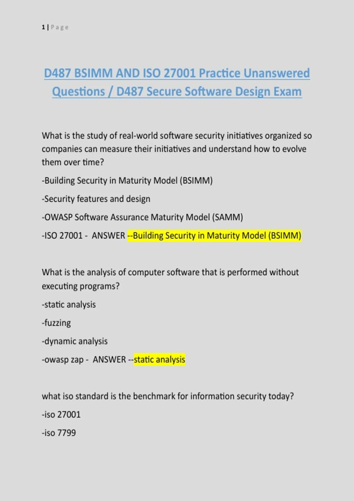 D487 BSIMM AND ISO 27001 Practice Unanswered