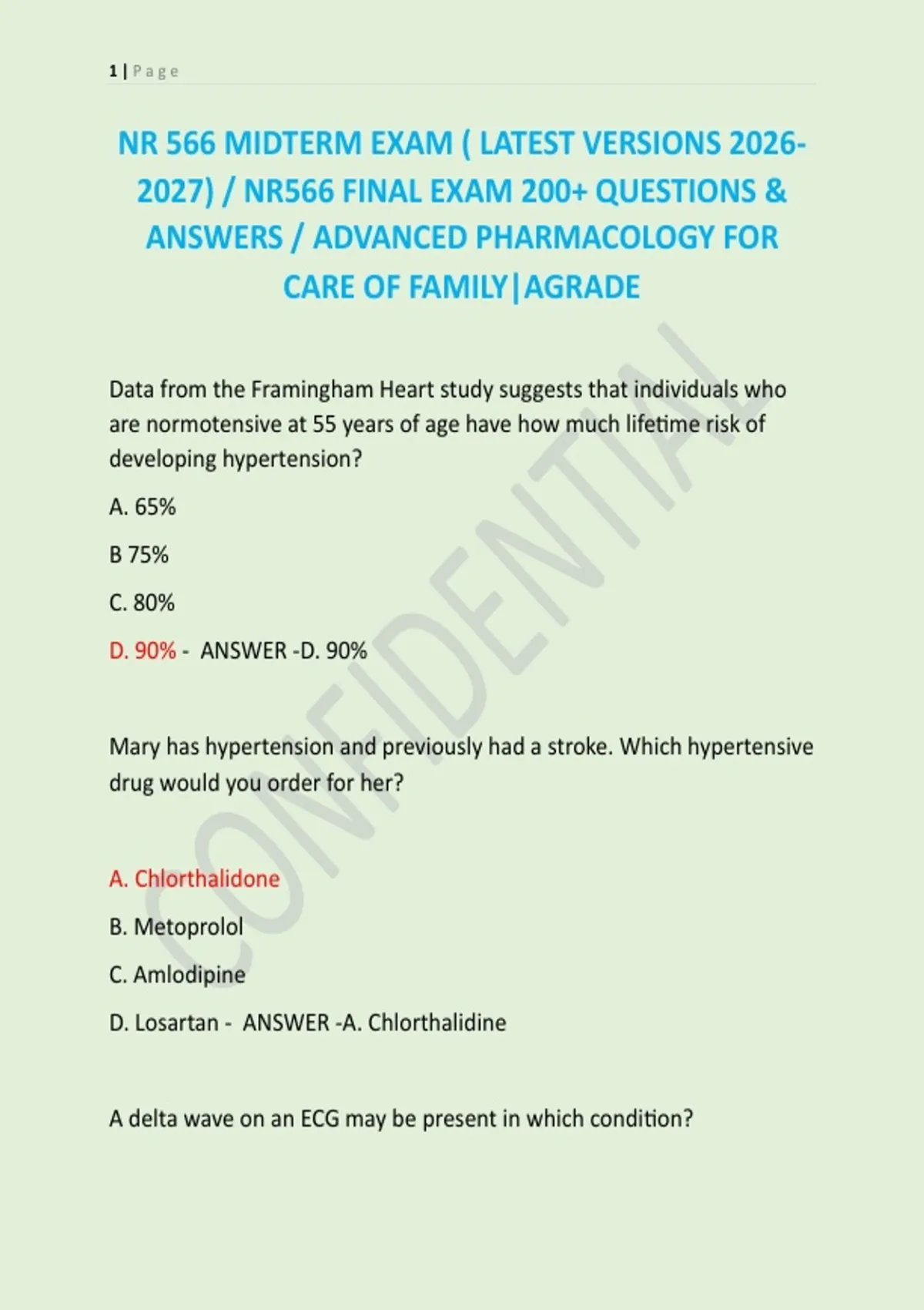 NR 566 MIDTERM EXAM ( LATEST VERSIONS 2026 2027) / NR566 FINAL EXAM 200+ QUESTIONS & ANSWERS / ADVANCED PHARMACOLOGY FOR CARE OF FAMILY|AGRADE