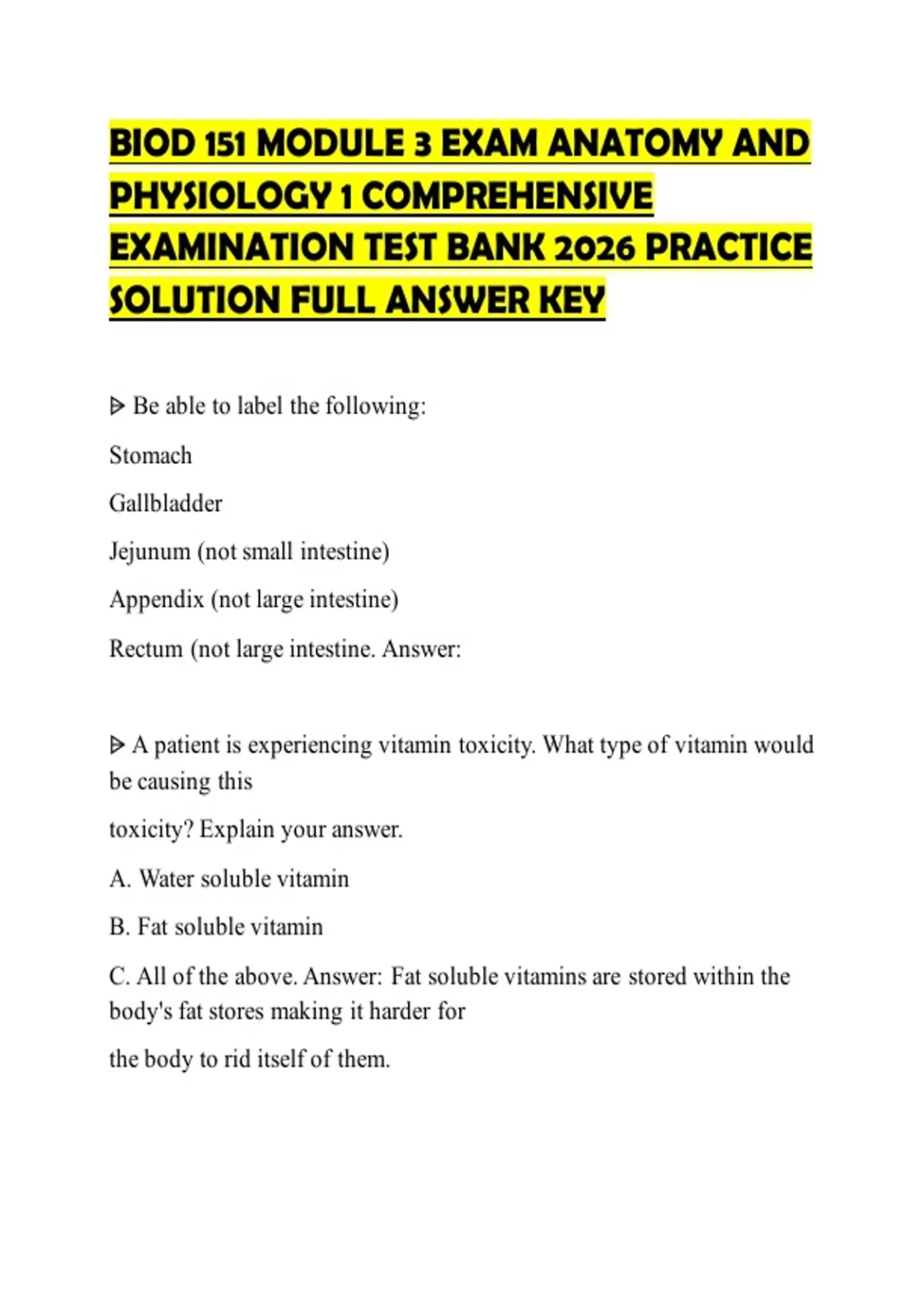 BIOD 151 MODULE 3 EXAM ANATOMY AND PHYSIOLOGY 1 COMPREHENSIVE EXAMINATION TEST BANK 2026 PRACTICE SOLUTION FULL ANSWER KEY