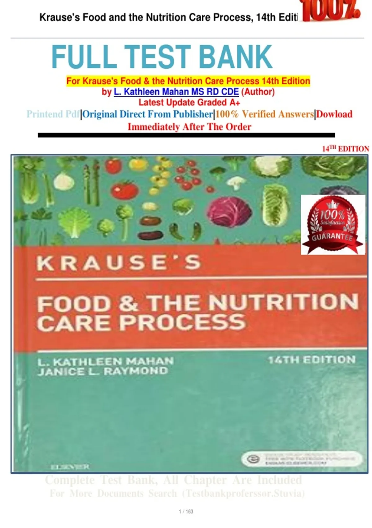 For Krause's Food & the Nutrition Care Process 14th Edition