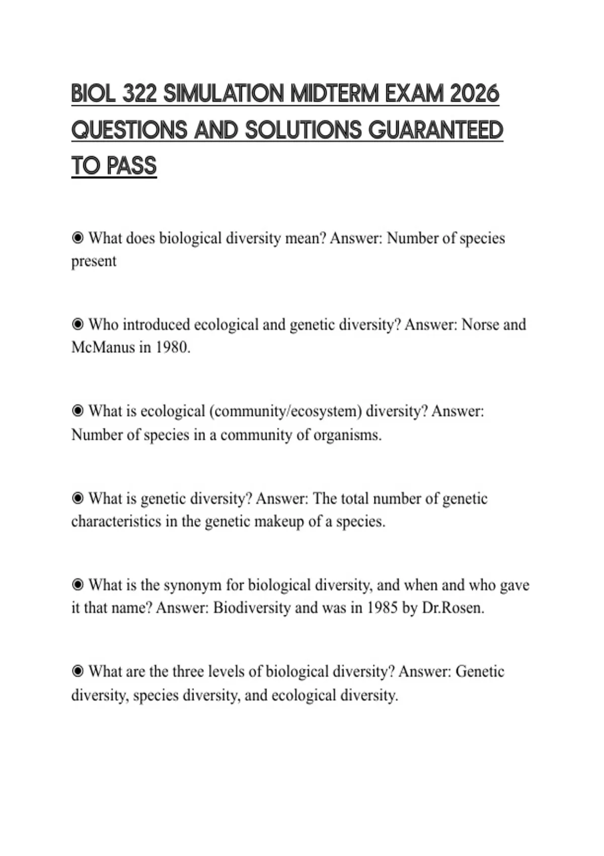 ◉ What are the three levels of biological diversity? Answer: Genetic